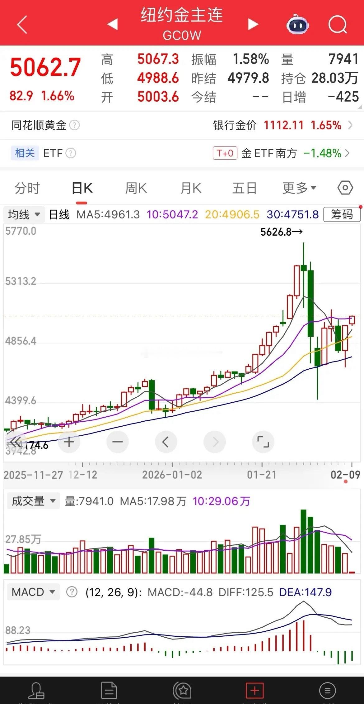 黄金价格开盘涨1.66%再次站上5000美元/盎司大关,目前价格5062美元/盎司。