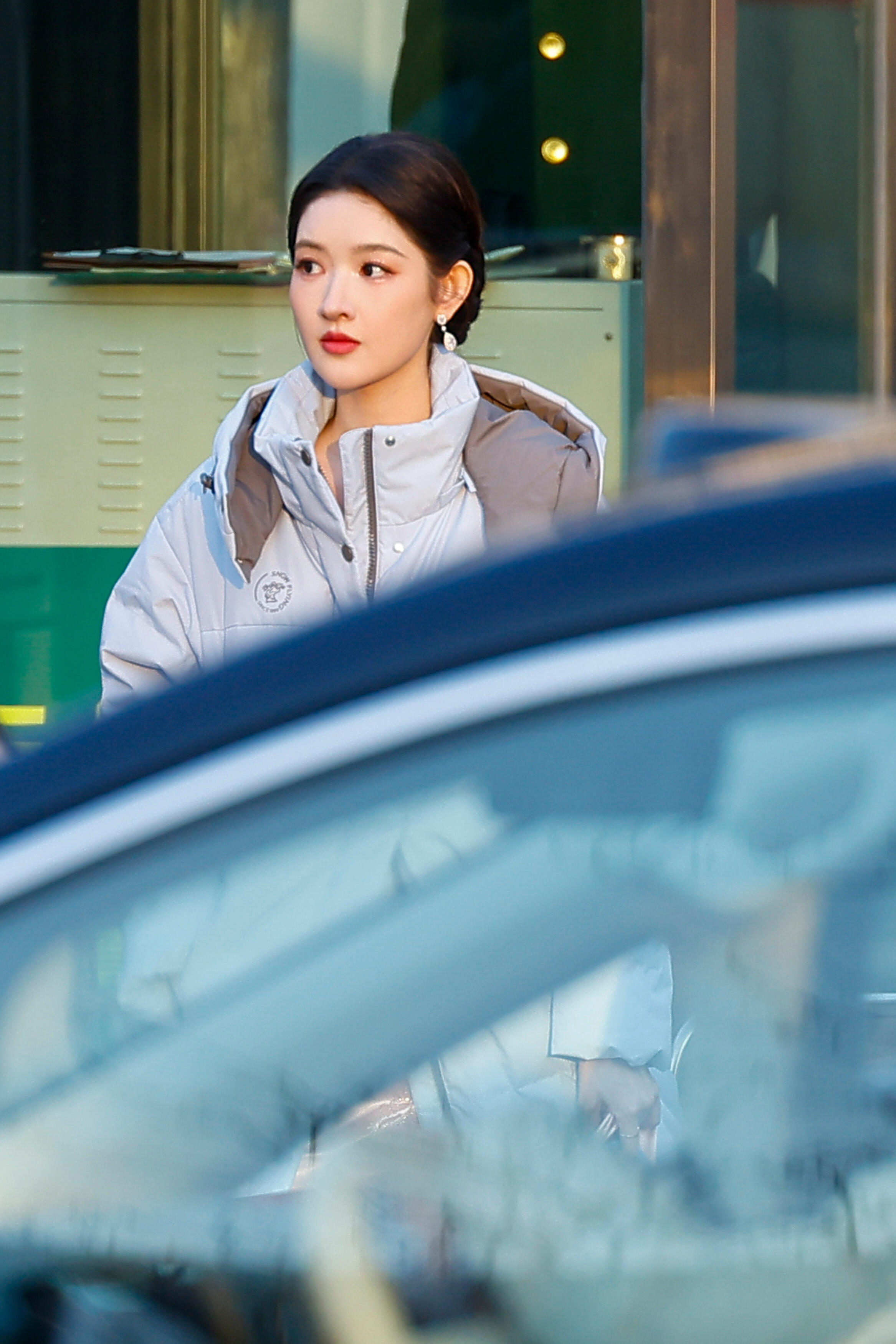 张天爱跟素人合影,胯真的好宽,大宅院似的