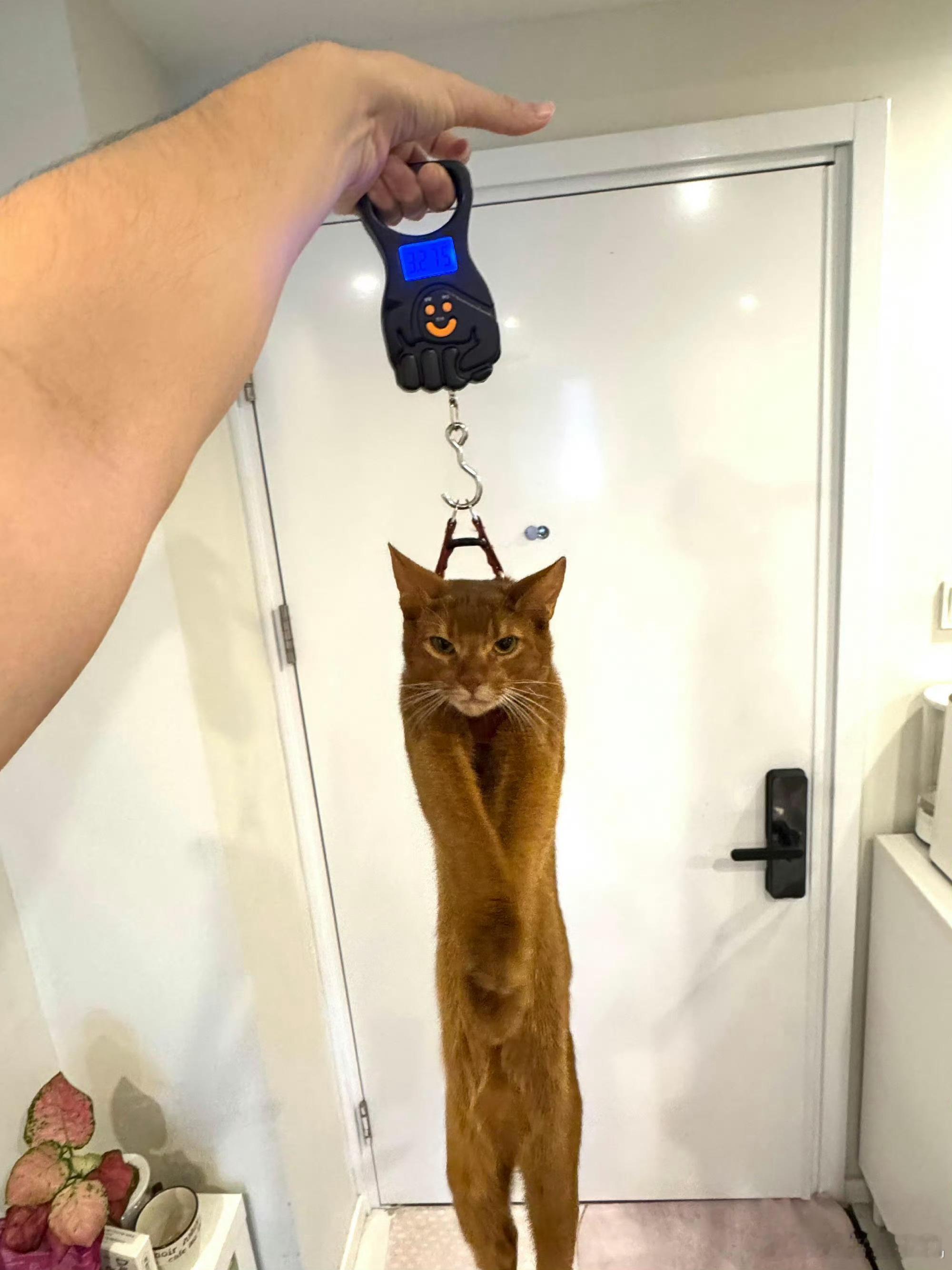 有没有体面一点的称重方式笑死我了哈哈哈这猫像被审问一样。