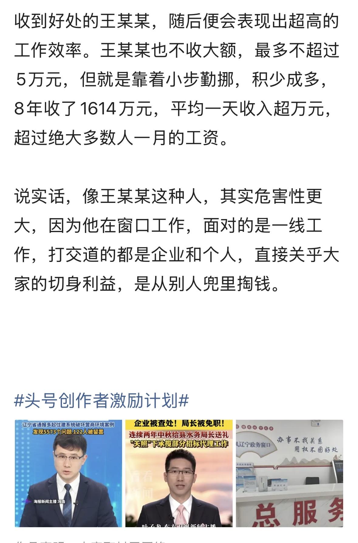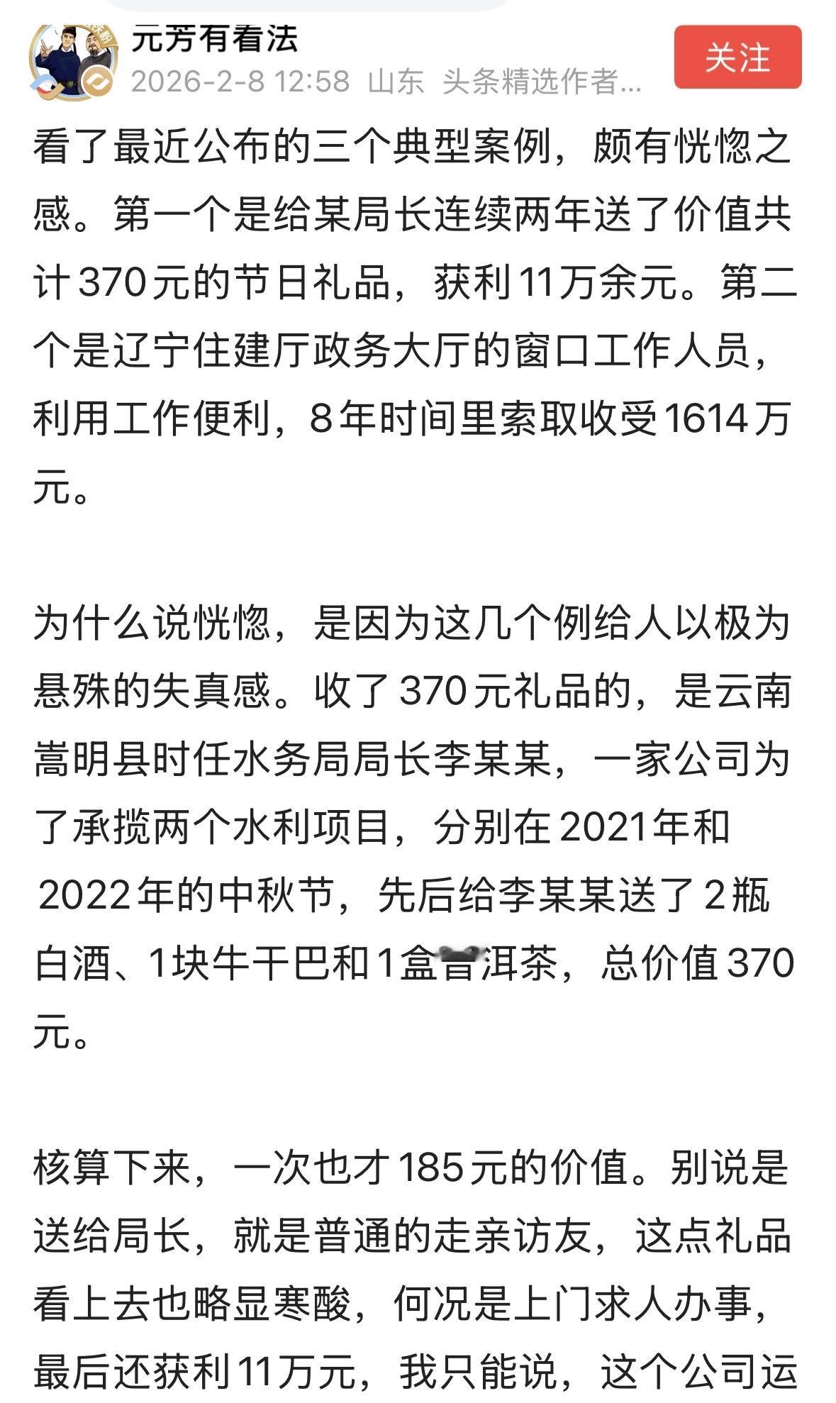 370块钱,包括两瓶酒,还有一块牛干巴,个一块普洱茶,每件核80块钱,还是两年送的,这送礼的老板,和收礼的局长,都是什么脑子?还真是一物降一物!住建局的小姑娘,眨眼的功夫,都比这个局长多,人家八年搞了1614万,每天收入5000多块,在奔向死亡的路上,局长相当于乌龟,这个住建局小姑娘相当于坐上了高铁!