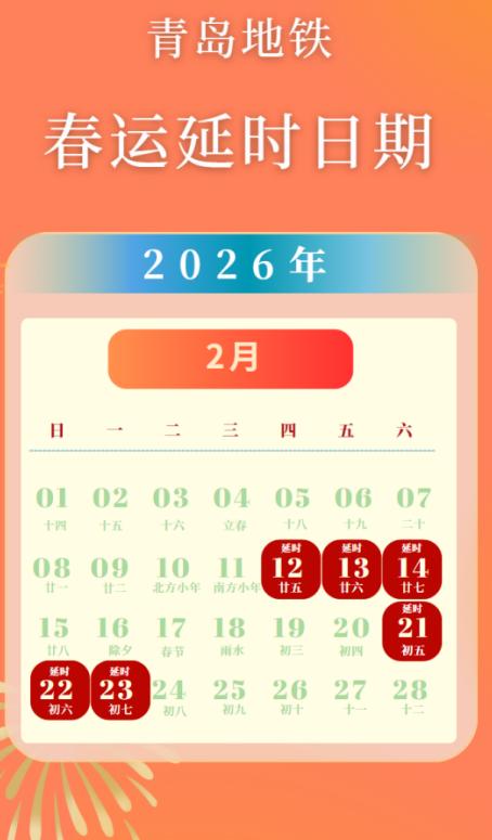 晒图笔记大赛2月12-14日(腊月二十五至二十七,共3天)、2月21-23日(正月初五至初七,共3天),青岛地铁1、3号线首车时间提前、末车时间延后,同时8号线将在早间05:20及夜间23:00各增开直达列车1列。