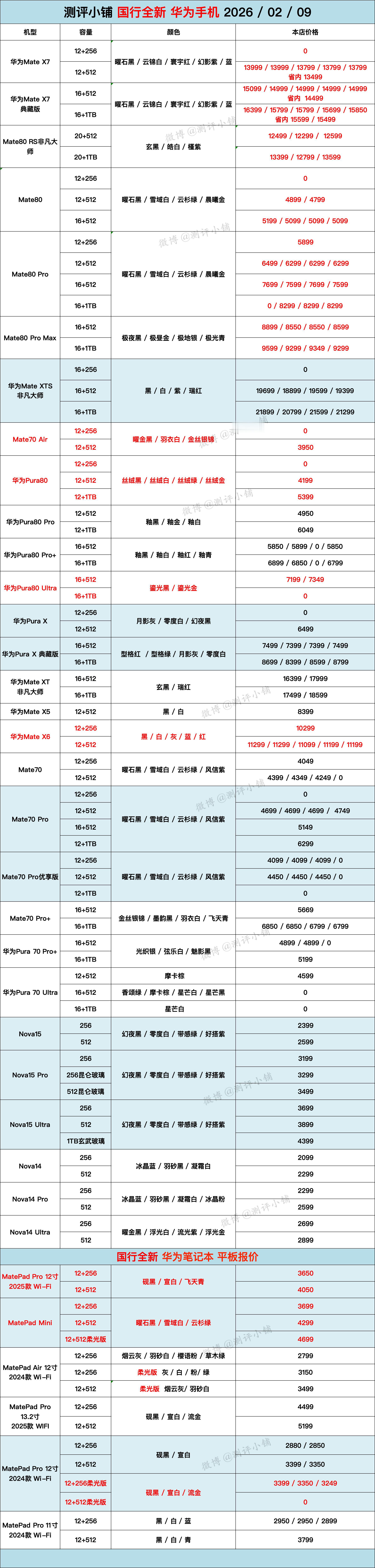 华为Mate80非凡大师,Mate80 Pro/Max,Nova15,小米17 Ultra,三星W26,魅族22等更新