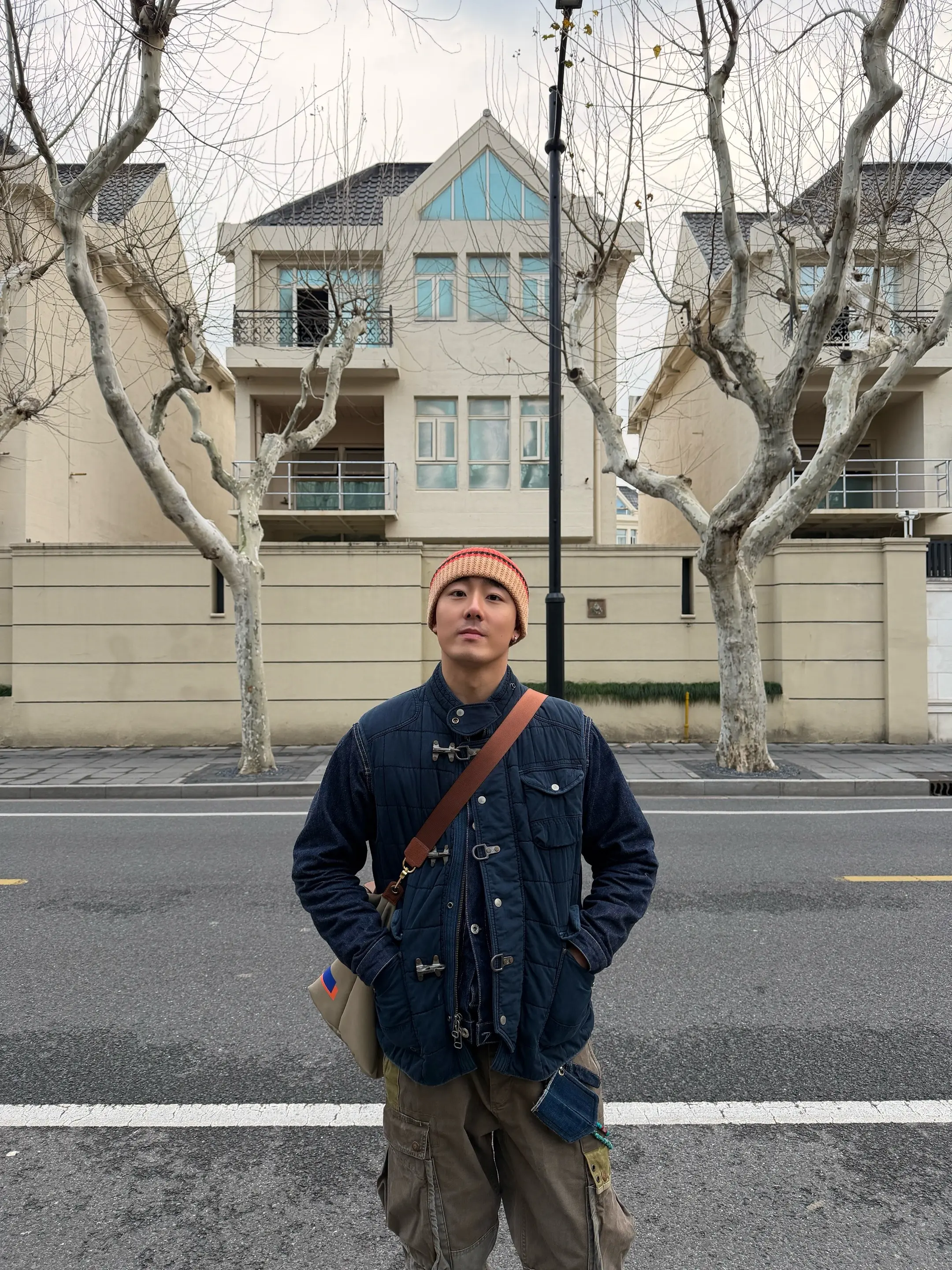 他在新加坡街头弯腰驼背,穿着松垮的大裤衩,手里还拎着一个极不协调的粉色女包。如果