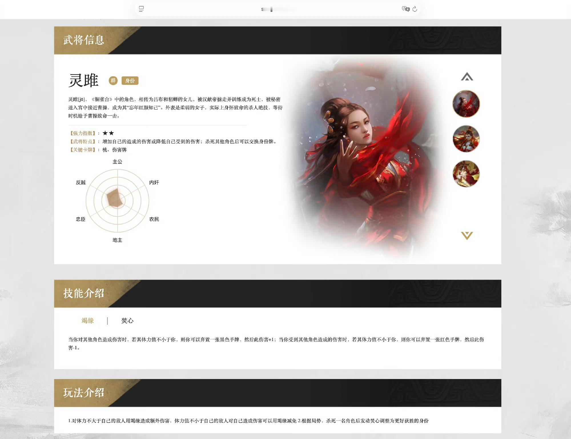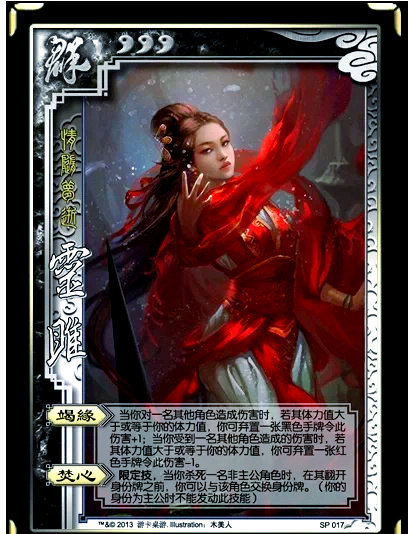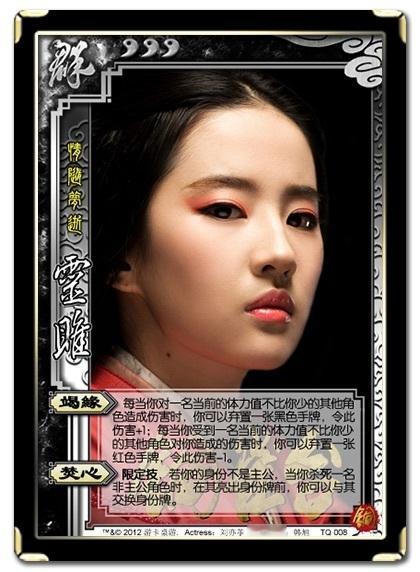 灵雎是电影《铜雀台》中刘亦菲扮演的女主角,都是三国杀里面的武将了天生的星光仙体。