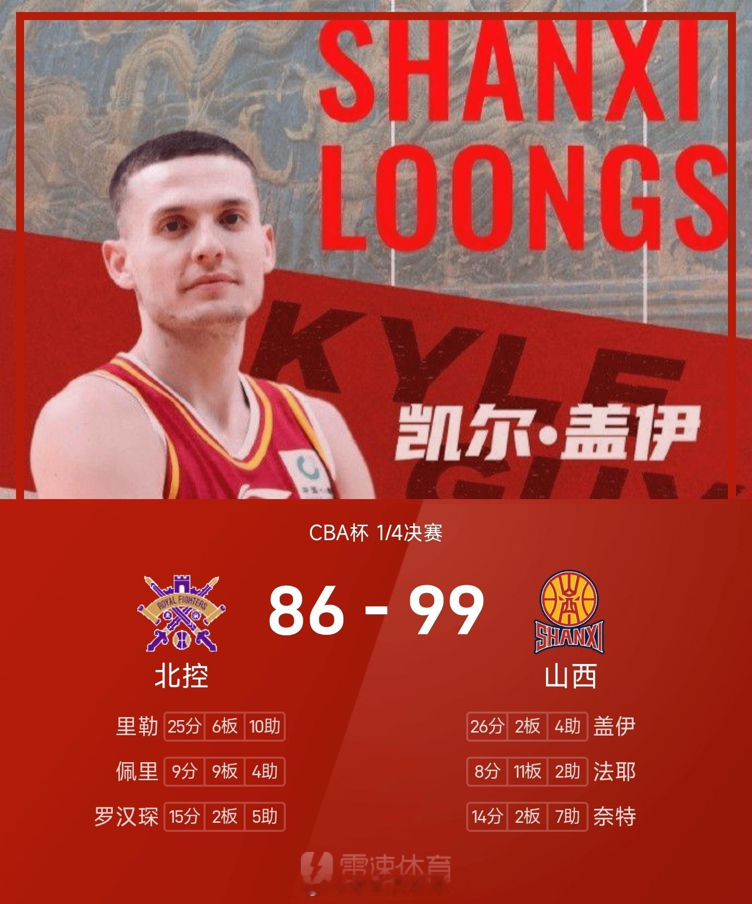 CBA杯战报:盖伊26分,山西99-86击败北控晋级四强 25/26赛季CBA杯 1/4决赛,山西对阵北控。