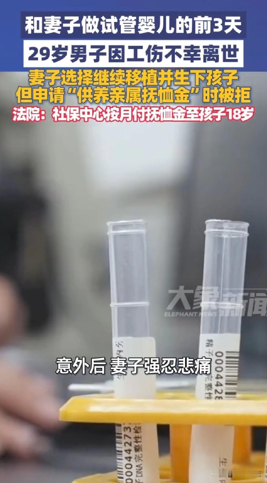 江苏淮安,29岁男子和妻子做试管婴儿,两人在医院冷冻了胚胎,并约定了胚胎移植手术的时间。可谁知,人生无常,手术前3天男子因工伤意外离世。妻子为了让男子能够后继有人,继续进行胚胎移植,并顺利生育了婴儿。孩子出生后,妻子申领供养亲属抚恤金,却遭到社保中心的拒绝,她一纸诉状闹上法庭,法院的判决温暖了女子。 李女士原本和丈夫陈某过着平淡又幸福的生活,夫妻俩结婚多年,一直没能拥有自己的孩子,心里都特别着急。 为了圆一个做父母的梦,两人商量后决定尝试试管婴儿,这成了他们生活里最大的盼头。 经过一系列检查和治疗,夫妻俩终于成功冷冻了胚胎,医院也和他们约定好了胚胎移植的时间。 眼看着离抱上孩子的日子越来越近,陈某和李女士都满心期待,每天都在憧憬着孩子出生后的生活,觉得日子一下子有了奔头。 可谁也没想到,意外会来得这么突然。 2019年12月12日,29岁的陈某在工作时发生了工伤,不幸当场离世。 这个消息像一道晴天霹雳,狠狠砸在了李女士身上。她怎么也不敢相信,前几天还和自己一起规划未来的丈夫,就这么永远离开了。 更让她崩溃的是,距离和医院约定的胚胎移植手术,只剩下短短三天。 一边是痛失爱人的绝望,一边是两人共同期盼的孩子,李女士陷入了巨大的挣扎。 她无数次想起丈夫生前对孩子的渴望,想起两人为了做试管婴儿付出的心血,心里只有一个念头:一定要把这个孩子生下来,这是丈夫留在世上唯一的血脉,也是他们爱情的延续。 在巨大的悲痛中,李女士强撑着身体,按照原计划完成了胚胎移植手术。 怀胎十月,她独自承受着身体和心理的双重压力,终于顺利生下了一个健康的宝宝。 看着怀里的孩子,李女士既欣慰又心酸,她知道,这个孩子是丈夫生命的延续,也是自己往后生活的全部希望。 孩子出生后,李女士想到丈夫是因工去世,按照相关规定,孩子作为工亡职工的亲属,应该可以申领供养亲属抚恤金。 于是她带着相关材料,向社保中心提交了申请,希望能为孩子争取到这份保障,毕竟她一个人抚养孩子,压力实在太大了。 可让她没想到的是,社保中心直接拒绝了她的申请。 社保中心认为,这个孩子并非传统意义上的遗腹子,是在陈某去世后才通过胚胎移植出生的,不符合领取抚恤金的条件。 一个人带孩子本来就不容易,现在还被拒绝申请抚恤金,李女士实在是太委屈。 她觉得社保中心的说法太不近人情,孩子明明是陈某的亲生骨肉,凭什么不能享受应有的待遇? 为了给孩子讨回公道,李女士毅然代表孩子将社保中心告上了法庭。 法庭上,双方围绕孩子是否属于工亡职工的供养亲属展开了激烈辩论。 社保中心坚持自己的观点,而李女士则拿出了亲子鉴定、胚胎冷冻记录等证据,证明孩子与陈某的生物学父子关系。 最终,法院经过审理给出了公正的判决。 《因工死亡职工供养亲属范围规定》第二条规定:本规定所称子女,包括婚生子女、非婚生子女、养子女和有抚养关系的继子女,其中,婚生子女、非婚生子女包括遗腹子女。 社保中心以“孩子不是传统遗腹子”拒付抚恤金,是对法条的机械理解。 本案中,胚胎形成、受精均在陈某生前完成,是夫妻双方共同生育意愿的合法产物;孩子与陈某存在生物学父子关系,与自然受孕的遗腹子女在亲子关系本质、血缘属性、供养需求上完全一致。 法条未限定“遗腹子”必须是体内受孕,仅以出生时间、孕育方式排除该子女,违背立法原意,供养亲属抚恤金的核心是保障工亡职工生前应供养的未成年子女,而非拘泥于孕育形式。 《民法典》第十六条规定:涉及遗产继承、接受赠与等胎儿利益保护的,胎儿视为具有民事权利能力。但是,胎儿娩出时为死体的,其民事权利能力自始不存在。 本案中,孩子虽在陈某工亡时为冷冻胚胎,但胚胎是其生命的初始形态,且在陈某生前已合法形成。 孩子娩出为活体,应溯及陈某生前即享有作为其子女的民事权利,包括获得供养的权利。 工伤保险制度与民法典胎儿保护理念一致,均优先保护未成年人权益、填补工亡导致的供养中断损失。 综上,法院认为,虽然这个孩子不属于传统的遗腹子范畴,但他与工亡职工陈某存在明确的生物学父子关系,属于陈某生前需要供养的亲属范围。 最终,法院判决社保中心每月向孩子支付一千多元的供养亲属抚恤金,一直支付到孩子年满18周岁为止。 这份判决不仅给了孩子一份生活保障,更告慰了丈夫的在天之灵,也让李女士感受到了法律的温度。