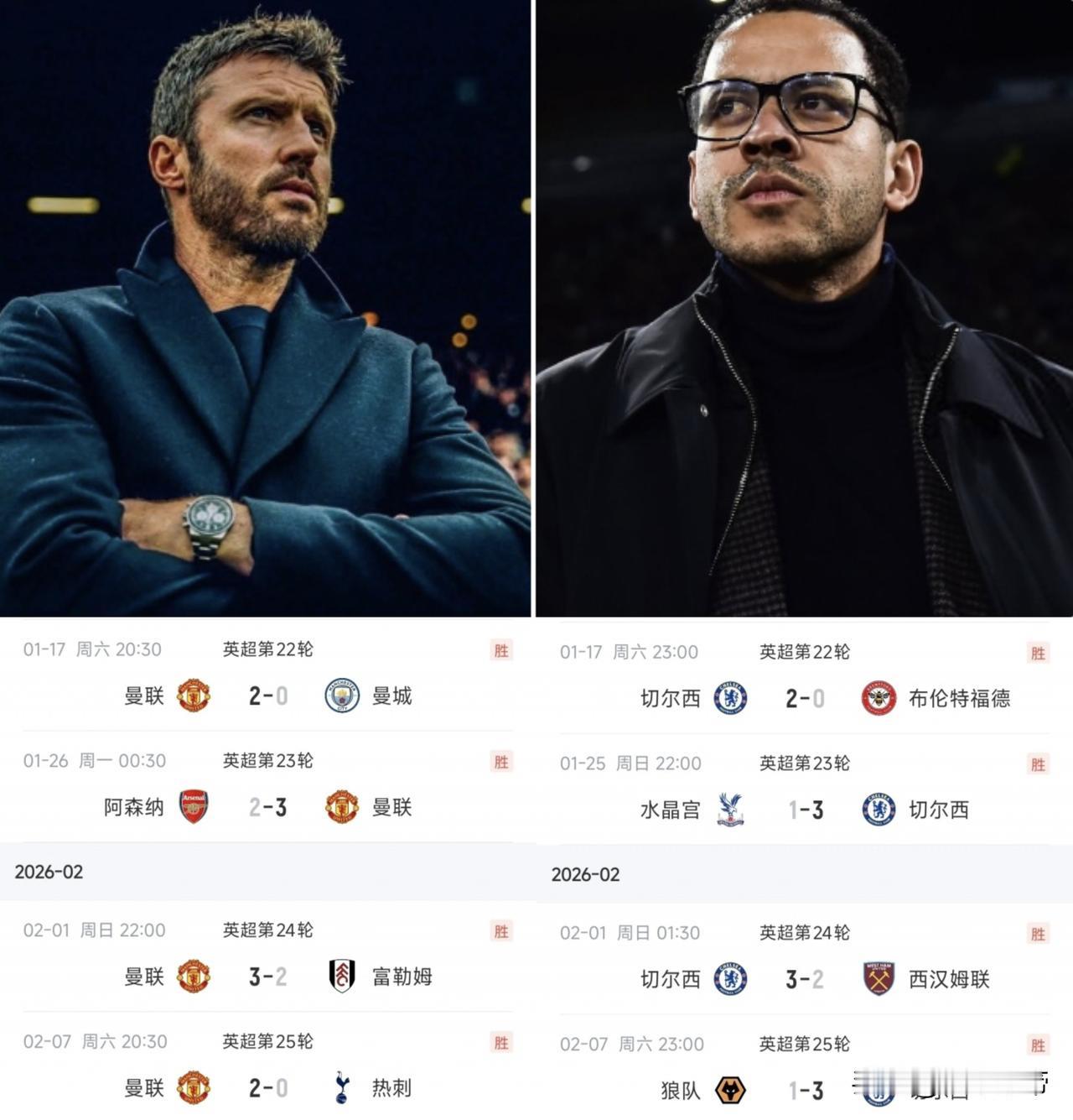 换帅如换刀,曼联和切尔西换帅后均取得联赛四连胜! 在今年1月1日的时候,切尔西官方宣布主教练马雷斯卡下课,马雷斯卡下课前切尔西联赛3轮不胜仅排名英超第5。 在今年1月5日的时候,曼联官方也宣布了宣布主教练阿莫林下课,阿莫林下课前曼联也是在联赛连续3轮比赛战平,排名英超第六。 阿莫林下课后,曼联让卡里克临时担任曼联主教练,没想到卡里克竟然带领曼联豪取四连胜,其中更是战胜了曼城和阿森纳两大强队,目前排名稳坐联赛第四。 同样的马雷斯卡下课后,切尔西邀请了法甲少帅罗塞尼尔执教,同样在联赛取得了四连胜,同样稳坐联赛第五。 曼联和切尔西的换帅真的是太成功了,简直就是换帅如换刀,直接让曼联和切尔西起飞了,怪不得有的球队总是喜欢更换教练,有的时候只有换教练才能解决问题。
