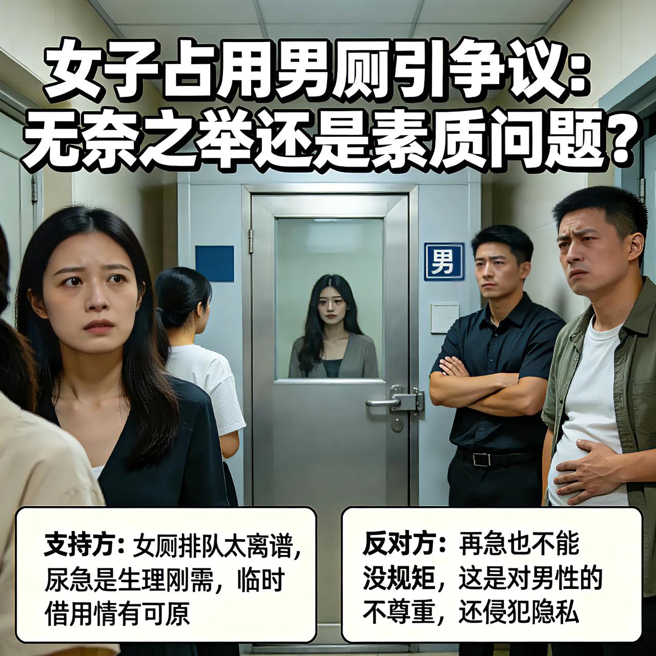 女子占用男厕引众怒!到底是无奈之举还是素质问题? 刷到女子占用男厕的视频,评论区直接吵翻了!有人说急了能用,有人骂没素质,你站哪头? ① 近日多地曝光,女厕排长队,有女性直接占用男厕,甚至反锁门,导致男同胞只能憋到崩溃。 ② 支持方:女厕排队太离谱,尿急是生理刚需,临时借用情有可原。 ③ 反对方:再急也不能没规矩,这是对男性的不尊重,还侵犯隐私。 其实核心不是“借不借”,而是“怎么借”。如果是紧急情况,能不能先打个招呼、快进快出?总不能把方便留给自己,把尴尬全甩给别人吧? 你遇到过这种事吗?如果是你,会让行吗?评论区聊聊! 女性占用男厕引争议 公共秩序 换位思考女厕所排长队的现象是否普遍存在 女厕所排长队 大量女生占用男厕所 女孩进男厕所 男女厕标识 带男童进女厕 女上厕所 女厕所拥挤 男厕女厕 景点女厕