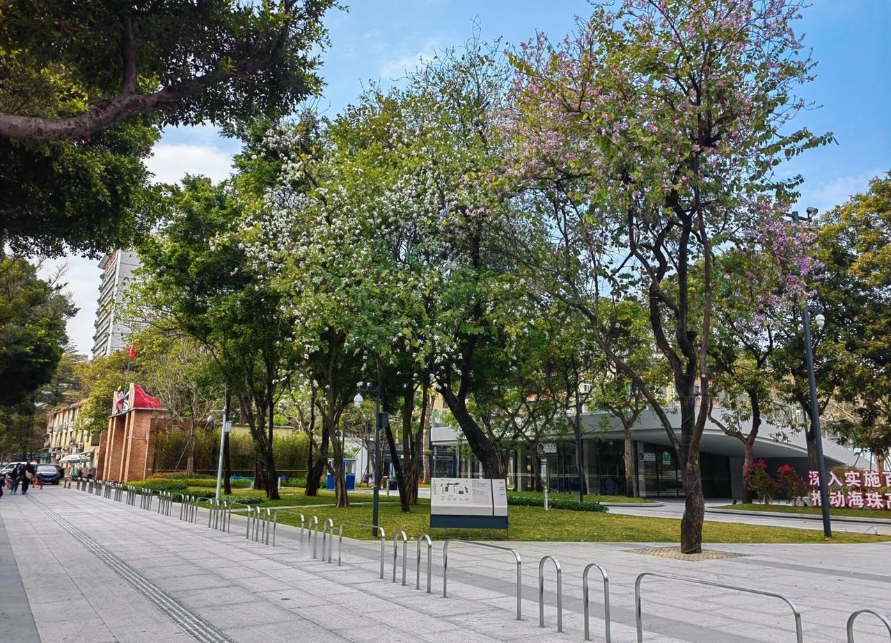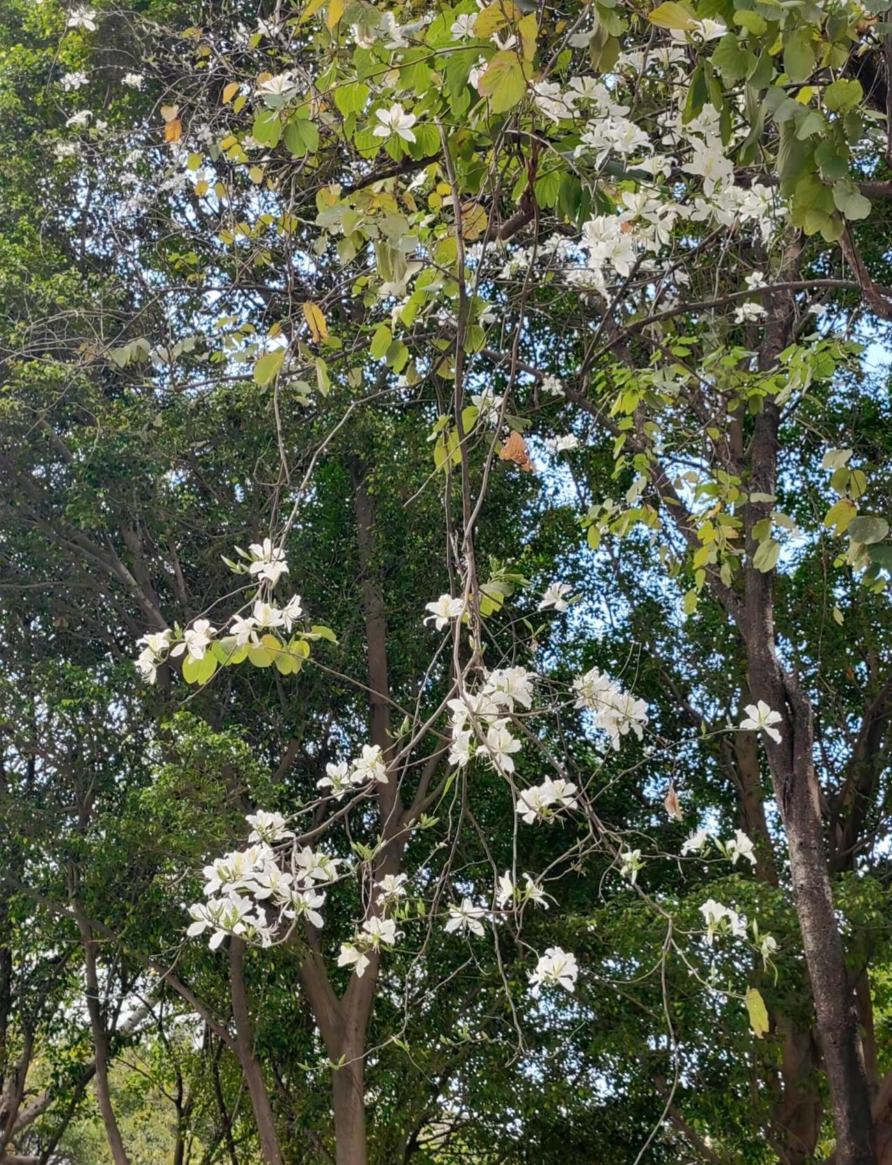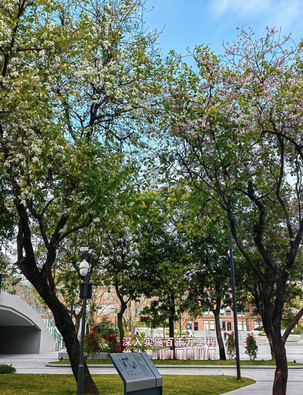 纺织学校门口紫荊花开 一棵粉,一棵白,很幸运有保留下来。 广州新中轴新港中路纺织学校 公园紫荆花