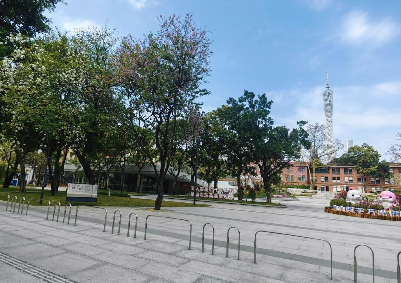 纺织学校门口紫荊花开 一棵粉,一棵白,很幸运有保留下来。 广州新中轴新港中路纺织