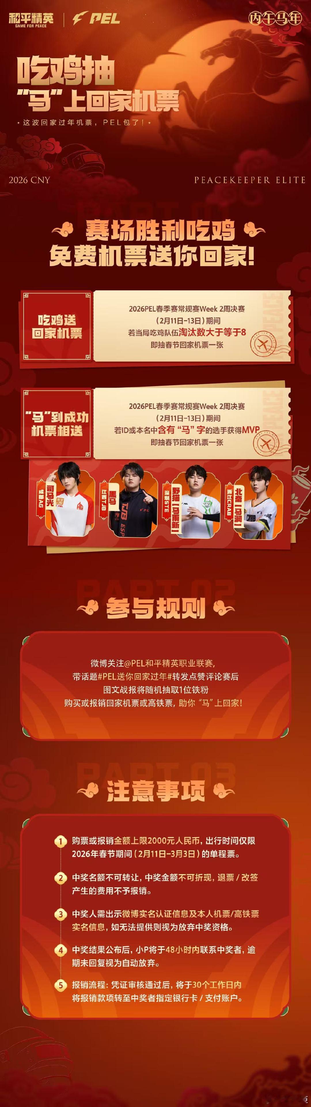 红金海报已就位,祥云锦鲤来加持——看比赛,赢机票,这个春节PEL助你“马上回家”!