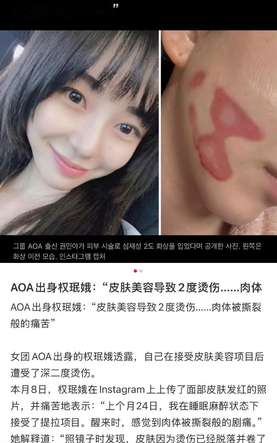 权珉娥医美后毁容皮肤提拉美容项目遭受了深二度烫伤,看着好严重不知道还能不能恢复。