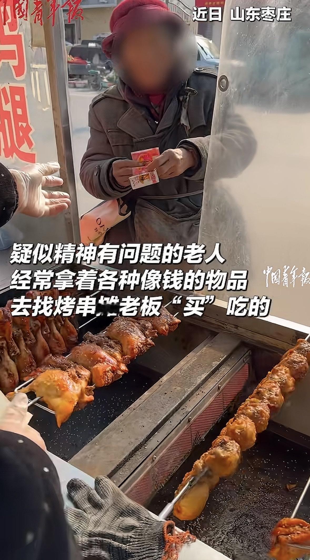 感动了!山东枣庄,一老太太拿着张冥币,来烧烤摊买吃的,出乎意料的是,老板竟啥也没说,收下了冥币,还给老太太装了一个烤串。一旁的人瞠目结舌,说男子收这钱太不吉利了!男子却说:身正不惧阴阳,我内心坦荡,收张纸钱又能咋地? 一处街角有个烤串摊,炭火总是烧得旺旺的,香味能飘半条街。 摊主是个汉子,大伙儿都喊他老张(化名)。 一位上了年纪的老人家,常来老张的摊前晃悠。老人看上去六七十岁,但头发白了不少,乱蓬蓬的,眼神有时候直勾勾的。 镇上的人都知道,这老人家脑子有点不清楚,精神上有些障碍,平时也不怎么说话,就爱在兜里揣些乱七八糟的玩意儿。 这天,老人家又出现了,来摊上买吃的,可结账时,她不像别的客人那样掏出手机扫码,也没掏出真钱,而是拿出一张冥币,往老张手上一递。 她嘴里含混不清地嘟囔:“买……吃的……” 换了别的生意,早把人轰走了,觉得这是拿人开涮,甚至觉得晦气。 但老张不一样。他一本正经地接过那些“钱”,然后利索地抓起烤得焦黄的肉串,装好后递给老人家。 而这一幕,他陪老人上演了7年之久。 老人这些年来买吃的,从没付过真钱,要不就拿孩子游乐场里用的币,要不就用冥币,但老张从没戳破过。 有人看后实在忍不住了,趁老人家走远了,悄悄问老张,说你不怕啊?那可是给死人用的钱,多不吉利!她脑子又不清醒,你随便给点吃的打发了就行,干嘛还真收? 老张听了这话,说这老人家虽然脑子不好使,但她心里有杆秤。你要是白给她吃的,她绝对不要。她觉得自己是在买,不是在讨。你要是不收她的钱,那是看不起她,伤她的自尊。 老张继续说:刚开始我也犹豫,觉得收这钱心里发毛。但后来我想通了,我卖的是烤串,她给的是她认为的钱。这就是个交换。只要我心里没鬼,没做亏心事,管它是人民币还是冥币,在我这,它就是一张纸,一个让老人家能安心吃顿饭的道具罢了。 咱做人,得‘身正不惧阴阳’!你自己行得端、坐得正,什么鬼神啊、晦气啊,都近不了你的身。我要是心里藏着坏,就是收真金白银也得倒霉。我心里坦荡,收张纸钱又能咋地? 这话说得硬气,也在理。 其实老张也观察了好几次。老人家每次来,脸上都没什么表情,木木的,但只要老张接过她手里的钱,她的眼神里就会闪过一丝光亮,那是被人平等对待的满足。 周围也有闲言碎语,说老张是不是傻,何必呢? 但在这个人人都精明的年代,老张这种“傻”显得特别珍贵。他做这些就图个心里安稳。他说得对,身正不惧阴阳。这世上哪有那么多妖魔鬼怪,真正可怕的是人心冷漠。 或许,这就是咱们老百姓常说的积德吧。不用烧香拜佛,不用捐大钱,只要在别人落魄、糊涂的时候,给一点点尊重,给一点点方便,这就是最大的身正。 老张用他的行动告诉咱们:只要心里有光,哪儿都是亮堂的。只要心底无私,这世间就没什么好怕的。 这件事最打动人的,不是老板的善心,而是他的懂人心。 大家习惯了用金钱衡量一切,觉得给吃的就是恩赐。但老张看得透:哪怕这老人老糊涂了,她也不想当乞丐,她想当个正经买东西的顾客。 老张配合她演这出买卖戏,收下的不是废纸,而是对一个生命的平等看待。 那句“身正不惧阴阳”,说得太硬气了。这世上很多人怕这怕那,怕晦气、怕别人说闲话,但老张心里没鬼,所以坦坦荡荡。 他让我们看到,真正的善良不是高高在上的施舍,而是细腻地呵护别人的自尊心。 对此,你怎么看? 关注@运良说法