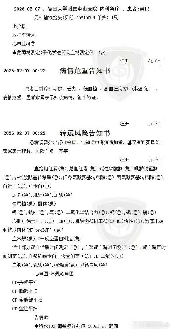 吴彤经历了一次病危吴彤朋友圈发文:“没想到经历了一次病危”,并晒出病危告知书。原来,2月7号吴彤因乏力、低血糖、高血压病3级等症状,被医院诊断为病情危重,医院还向吴彤家属下达了病危告知书。注意身体,早点康复!