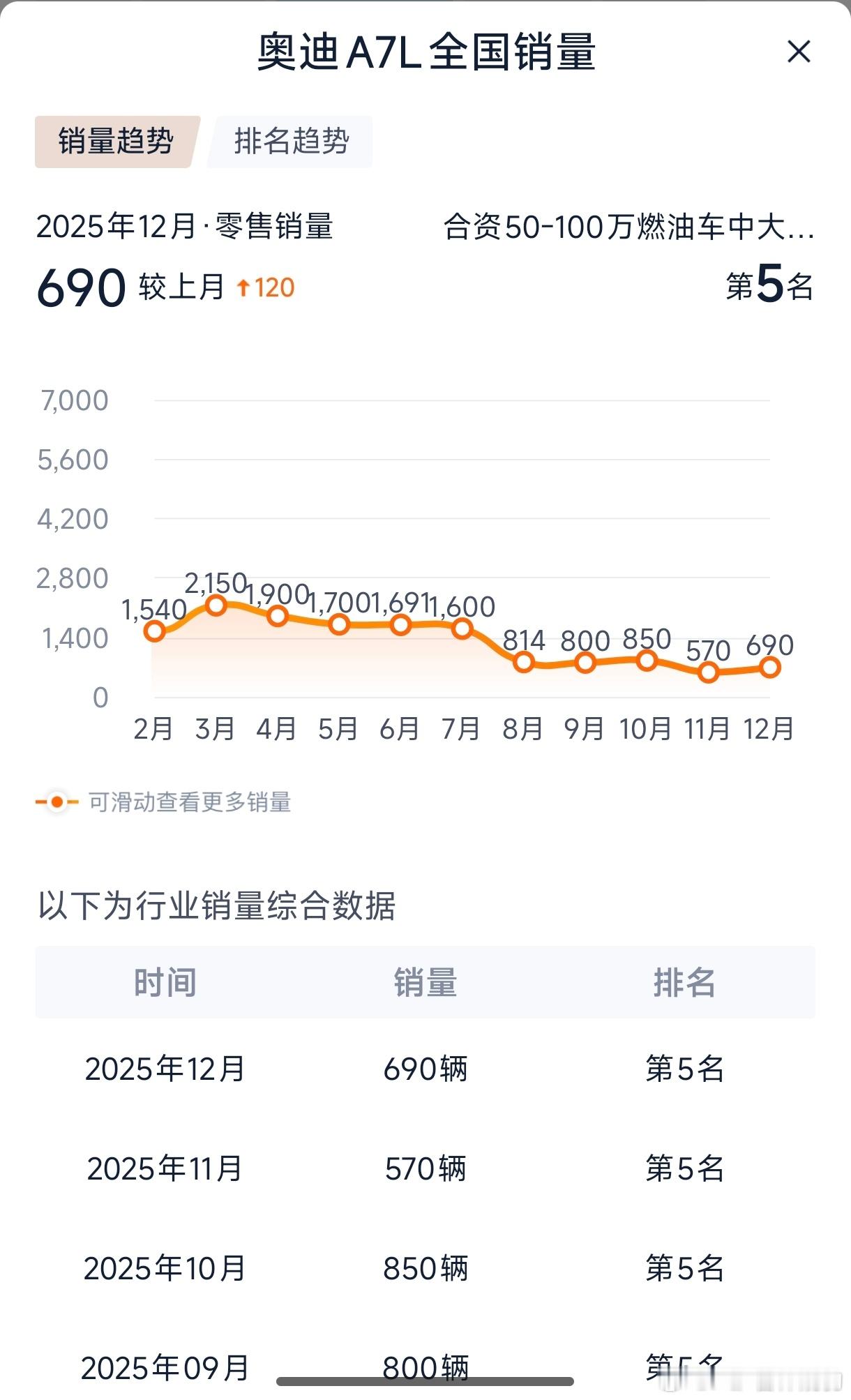 第一次在长春路上见到奥迪a7l 看了一下销量真惨对比奥迪a6l 没法看