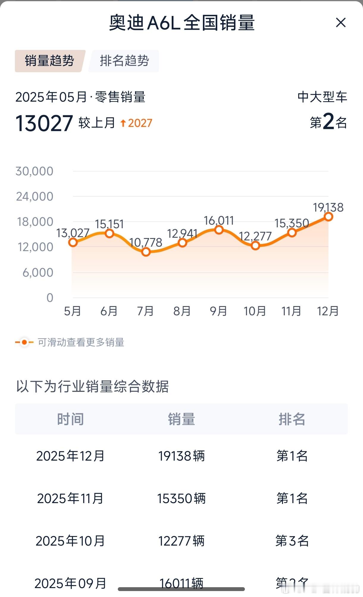 奥迪去年在国内卖了57万辆车,重回燃油豪华车市场第一,奥迪A6L就占了17.2万