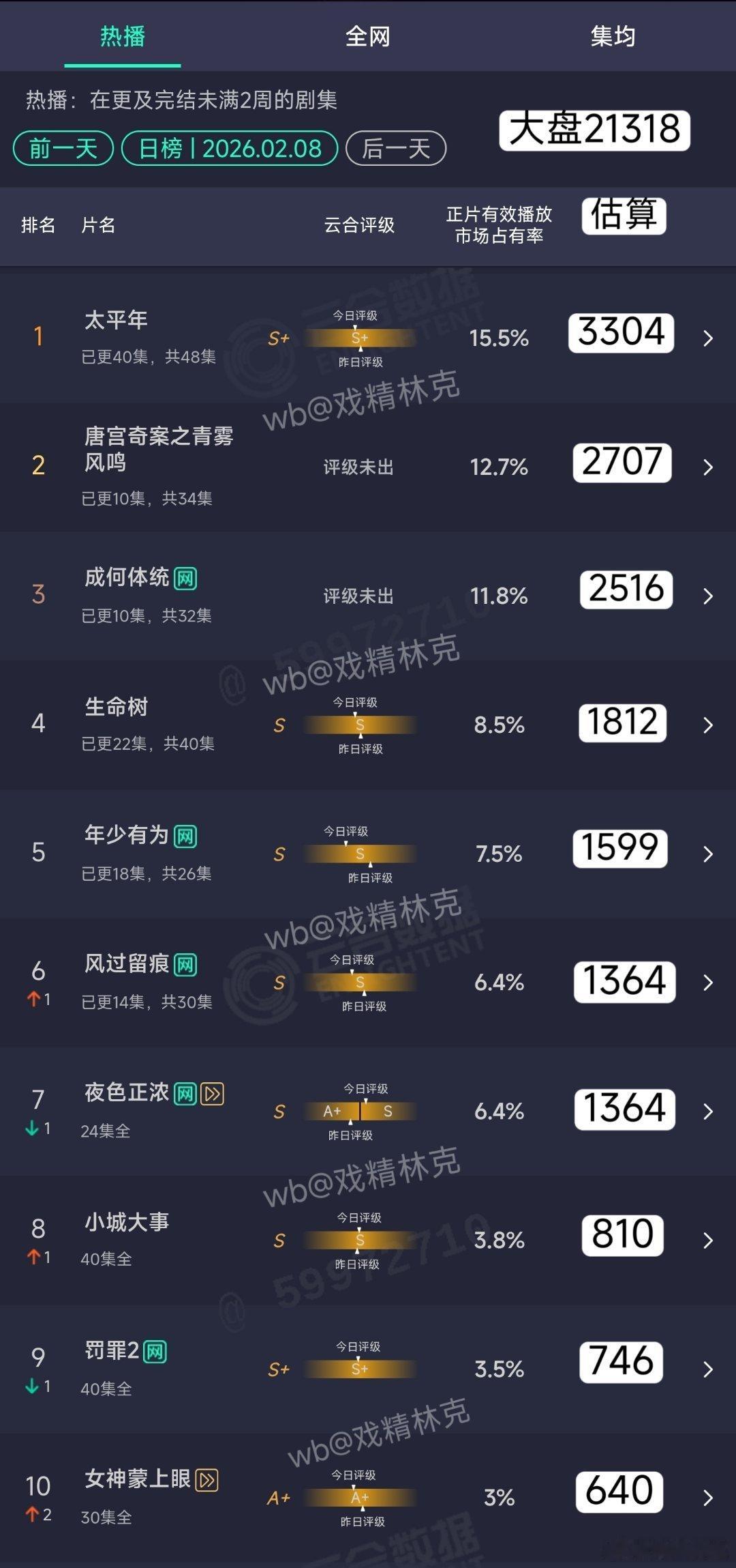 2.08云合估算:唐宫奇案2707万成何体统2516万