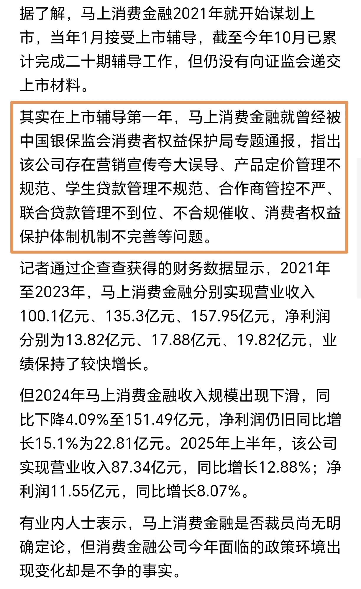 马上消费金融为了冲刺IPO上市也是拼了。 从21年折腾到现在,当年被官方部门点名通报问题一大堆,还是不死心。 今年开年狂甩坏账,挂牌出让不良资产,和其他消金公司一起成了不良资产挂牌出让的主力。去年营收下滑,今年就传出了裁员的传闻。 甩卖不良资产、裁员节流……估计都是为了让经营财报健康,能够得着上市的标准。 但只靠放网贷作为主要营收业务,真的能长久支撑起一家上市公司吗? 消费金融贷款 马上消费公司
