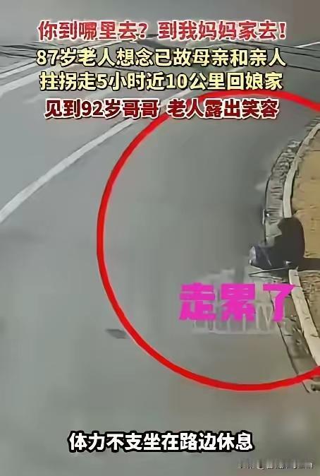 看哭了!江苏,87岁老人瞒着家人,凌晨5点偷偷拄拐杖出门,徒步近10公里、耗时5小时,只为回娘家见一见亲人,结果走到半道时,因体力不支不得不坐在国道边休息。 这位老人姓曹,今年87岁,东台本地人,儿孙满堂的她本应安享晚年,可年关将近,她心里总惦着十多公里外的娘家。不是子女不孝顺,相反,孩子们把她照顾得妥帖,只是她看子女们年底忙里忙外,采购年货、收拾屋子,连坐下来歇会儿的功夫都少,便不愿再添麻烦。此前她提过想回娘家看看,子女们当即说要开车送,却也反复叮嘱她年纪大了,腿脚不利索,独自出门太危险,她记着孩子们的担心,却也藏起了自己的执念,索性打定主意,悄悄出门自己走回去。凌晨5点的天还沉在黑夜里,村里的路静悄悄的,曹奶奶轻手轻脚掀开被子,怕吵醒熟睡的儿孙,她穿上厚棉袄,摸出兜里攒的几块酥糖——那是92岁的哥哥年轻时最爱的吃食,又拿起墙角那根磨得发亮的木头拐杖,握柄处被十几年的掌心磨得光滑,这才慢慢推开家门,连门轴转动的声响都刻意放轻,一步步踏上了回娘家的路。 天慢慢亮起来,路边的树影渐渐清晰,国道上的车从零星几辆变得络绎不绝,曹奶奶就靠着路边走,走一步歇一步,拐杖戳在水泥路面上,发出一声声“笃笃”的轻响,成了路上唯一的陪伴。风刮在脸上凉飕飕的,她把棉袄的领口紧了紧,依旧咬着牙往前挪,心里记着的还是从前的老路,印象里的泥巴路早变成了平整的水泥路,路边的破瓦房也换成了崭新的楼房,熟悉的标记没了踪影,她却还凭着记忆硬走。五个小时,近十公里的路,对于年轻人来说都不算轻松,更何况一位87岁的老人,她的腿肚子越走越沉,脚下的布鞋磨得发僵,兜里的酥糖被攥得温热,直到眼前的路彻底变得陌生,她才慌了神。那一刻,疲惫瞬间压垮了她,扶着拐杖的手开始发抖,再也迈不动一步,只能慢慢坐在国道边的路牙上,大口喘着气,头发被风吹得乱糟糟的,眼神里满是无助。 巡逻的民警远远就看到了独自坐在路边的曹奶奶,车流穿梭的国道边,老人的身影显得格外单薄,民警当即停车上前询问。曹奶奶抬起头,声音沙哑得几乎听不清,却执拗地说着要去妈妈家,说着说着红了眼眶,只一句“我想妈妈了”,就让在场的民警湿了眼眶。她记不清具体的路名,却能准确说出娘家哥哥的名字和村子,民警赶紧给她递上热水和面包,老人起初还一个劲推辞,说不想麻烦旁人,民警耐着性子安抚,一边联系老人所在村的村干部,一边拨通了老人家人的电话。电话那头,曹奶奶的儿子正急得团团转,家里人发现老人不在,屋里的被子叠得整整齐齐,门口的拐杖没了踪影,正准备四处寻找,接到民警电话的那一刻,悬着的心才落了地,又气又心疼,立马开车往约定的地点赶。 民警没有让老人继续等,带着她坐上警车,按着村干部提供的地址往金灶村赶。路上,曹奶奶慢慢跟民警念叨,妈妈走了好些年了,娘家就剩92岁的哥哥一个亲人,兄妹俩一年见不了一回,自己年纪大了,总怕再不走,以后就没机会见了。民警一路陪着她唠家常,话里话外安抚着她的情绪,车子刚拐进金灶村的巷子,曹奶奶就一眼认出了娘家的老院子,原本黯淡的眼睛瞬间亮了起来。92岁的哥哥听到院外的动静,颤巍巍从屋里走出来,看到站在门口的妹妹,愣了好几秒,才踉跄着迎上去,兄妹俩一把抱住彼此,嘴里喊着对方的小名,哭声混着念叨声,听得旁人心里发酸。曹奶奶把兜里的酥糖塞到哥哥手里,那几块糖被攥了一路,温温的,就像她藏了许久的思念。 曹奶奶的儿子赶到时,正看到兄妹俩手拉手坐在院里说话,他红着眼眶走到母亲身边,想说几句责备的话,话到嘴边却只剩一句“下次别这样了”。民警叮嘱家人,老人年纪大了,心里的牵挂最磨人,别只想着让老人吃穿不愁,更要多问问他们的心愿,才放心离开。村里人听说了曹奶奶的事,都感慨这份血脉亲情的珍贵,87岁的老人,心里装着的还是娘家,还是血脉相连的哥哥,这份念想,无关年纪,只关情分。 人这一辈子,不管活到多大年纪,娘家都是心底最软的那根弦,那是生养自己的地方,有血脉相连的亲人,有刻在骨子里的牵挂。我们总以为给老人足够的物质,让他们安稳度日就是孝顺,却常常忽略了他们心里的小念想,总说以后有空再陪,却忘了老人的时光,经不起等待。读懂老人的牵挂,成全他们的心愿,这份走心的陪伴,才是最真的孝顺。 各位读者你们怎么看?欢迎在评论区讨论。