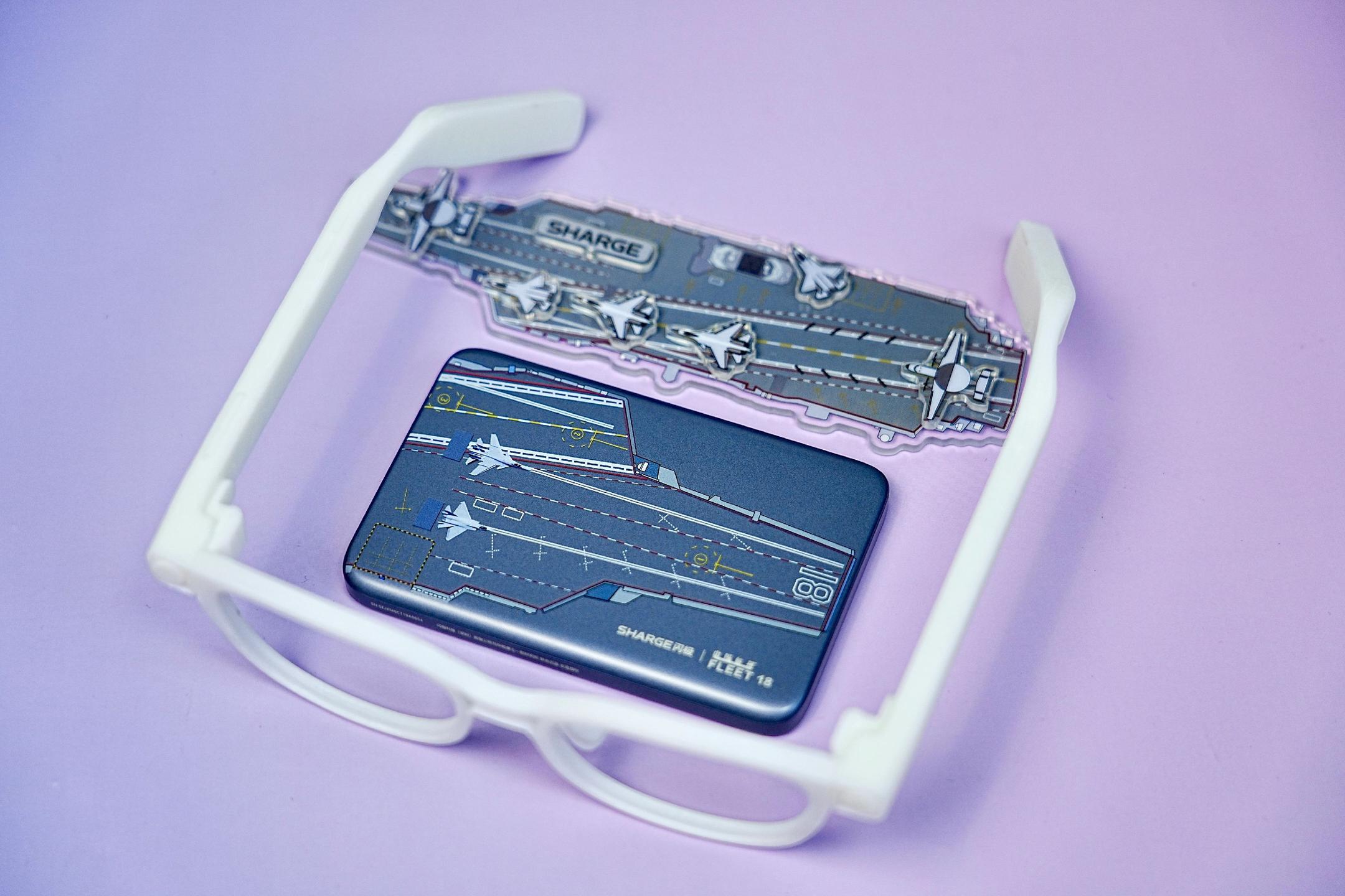 闪极限定礼盒开箱。闪极限定礼盒好帅,是和中国航母联合正版授权发行的纪念品礼盒,里面是3D打印的新一代AI眼镜模型,闪极·定造能以闪电般的速度定制个人专属AI智能眼镜,还有一套中国航母冰箱贴,上面的飞机可以也可以单独吸附在冰箱上,还有一个我特别喜欢的限定版的磁吸充电宝,正反面都印有航母甲板元素,充电宝支持15W无线快充,87mm和113g轻薄,是iPhone的出门好搭子,吸附不挡镜头,支持3C认证能带上飞机,老方便了。