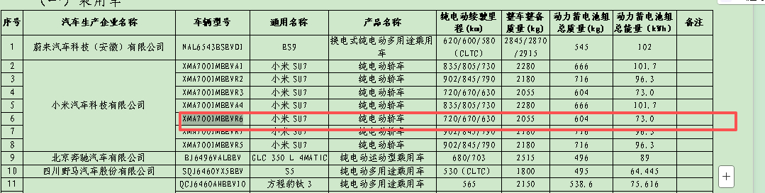 新款小米SU7的电池容量来了,标准72度,Pro 96.3度,Max 101.7度。