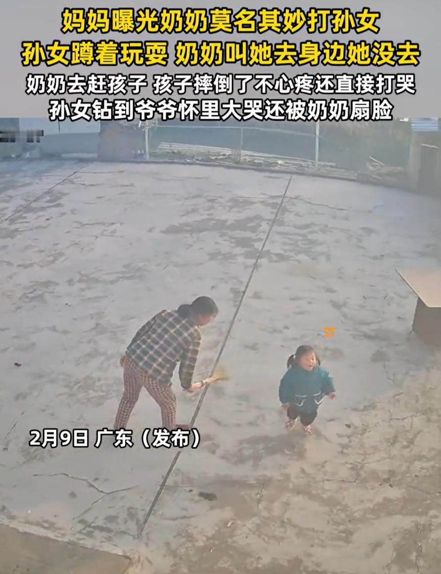 看的心疼!广东,女子通过监控想看看女儿,谁知打开监控就发现奶奶莫名其妙拿扫把赶孩子、摔倒了还打骂,甚至躲爷爷怀里都被扇脸,就连爷爷都觉得不妥,指了指头顶的监控,事后女子直接把视频曝光到了网上 监控显示,当时小女孩正在院子里玩耍,奶奶叫她过去,孩子玩得正投入没有立刻回应。没想到奶奶直接拿起扫把追打孩子,追逐过程中孩子不慎摔倒。奶奶非但没有扶起安慰,反而一把拽起孩子继续打骂 孩子吓得哭着跑向爷爷,躲进爷爷怀里。但奶奶的怒气仍未消减,对着哭泣的孩子又扇了两巴掌,孩子哭得更加厉害。这时爷爷抬头指了指天花板上的监控摄像头,奶奶这才停下动作 而整个过程刚好被妈妈看到,她也是越看越气,后来直接把监控曝光到了网上 有网友说:为啥自己不带?要给老人带就要充分信任老人,这种调调说老人这个永远也不会有好,永远吵不完的架 我觉得,这种事的根源其实在于,很多家庭在照顾孩子这件事上并没有明确的界限和规则。长辈们可能出于疼爱孩子的心,习惯了过度干涉,但往往缺乏对现代育儿方式的理解 尤其是像这种追打孩子的行为,更多的是一种发泄情绪的方式,而不是出于关心。作为父母,的确要对长辈有足够的信任,但信任不等于放任。孩子的成长环境,绝不能让暴力成为教育的一部分