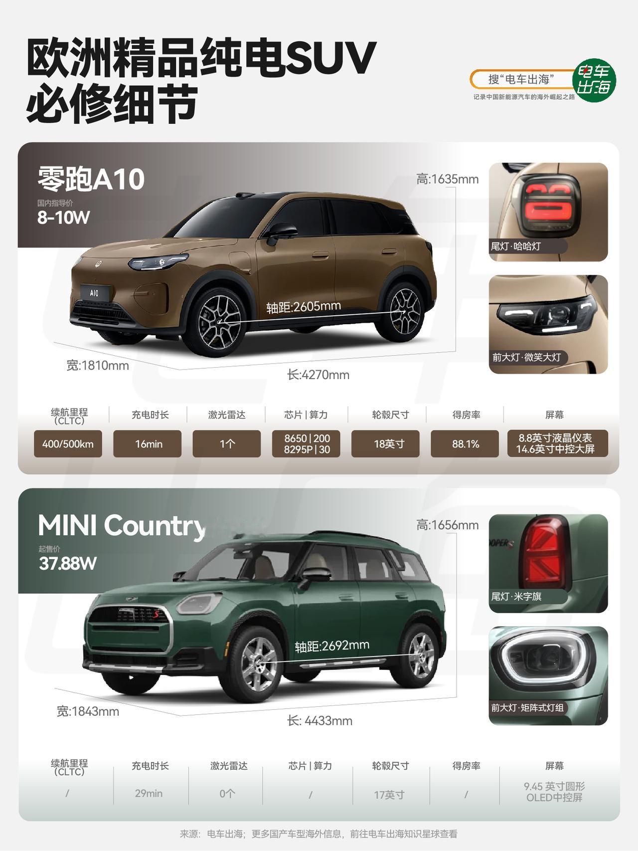 说到精品车,MINI、smart一直是让人心动的标杆。它们不单纯是简单的代步工具,而代表了一种有态度、有腔调的生活方式。 如今在欧洲街头,中国产的精品纯电SUV也越来越多。像smart 精灵1号、蔚来萤火虫、比亚迪元UP这些车型,凭着实用的智能配置、扎实的续航和好看的设计,越来越受到欧洲用户的青睐。 今年,零跑也即将加入这个精品阵营,推出全新A10。从目前信息来看,这款车似乎带着更鲜明的“技术普惠”思路。 智能配置越级:A10搭载激光雷达和高通8295芯片,这在10万级车型中非常少见,智驾能力和座舱体验直接看齐更高价位车型。 续航补能高效:500公里左右的续航,配合16分钟快充(30%-80%),既保证了实用性,也提升了用车便利性,很适合欧洲用户的中短途出行习惯。 安全细节用心:同级唯一爆胎稳定控制功能,此前在牙克石极寒测试中已验证其可靠性,这项以往多见于高端车型的安全配置,A10也给足了安心感。 设计有温度感:A10延续了零跑家族化的“微笑”设计语言,比如,它的灯会“微笑”打招呼,前脸微笑、车尾哈哈笑,既有辨识度又不失温度感;虽然车长才4米2,但做出了88%的得房率,比看着能装,体现了“精品车大空间”的设计理念。 借助Stellantis的全球渠道网络,零跑在欧洲已经铺了800多个网点。如果A10能延续“高配置、亲民价”的产品策略,或许能在欧洲市场开辟出新的差异化竞争力,不是比拼性价比,而是提供一种“智能平权”的新选择。 当越来越多中国车企带着诚意之作走向全球,“好车”的定义或许正在被温柔重塑,不必昂贵,但需用心;不必庞大,但需精致。这才是精品车该有的样子。