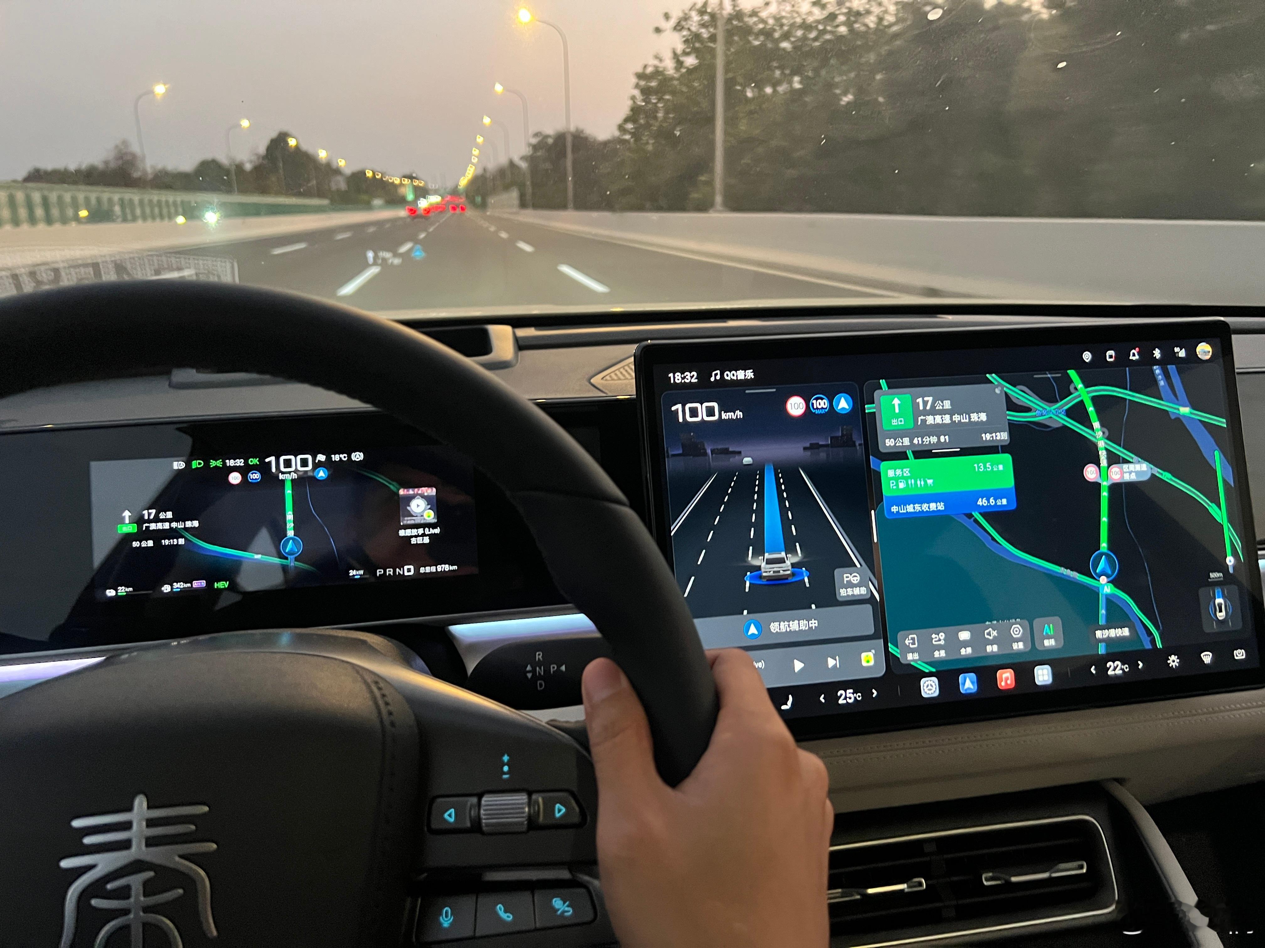 今天开着这台26款秦L大电池版跑了200多公里大概一半纯电一半混动高速基本开着领航辅助NOA纯电剩10多公里就会进入HEV模式不省油的开法也能做到3.5L的综合油耗新一代比亚迪DM5.0确实够省!btw,新款的两个青色都挺好看的,特别有朝气