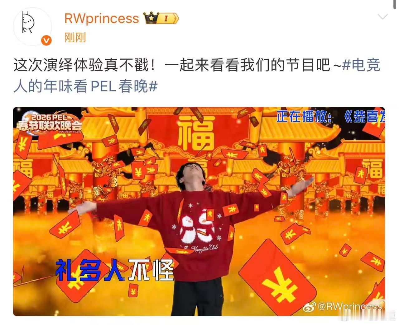 电竞人的年味看PEL春晚 🧨 前方高能!选手集体“剧透”,今晚八点笑点已预加载完毕!RWprincess在“福”雨里仰天《恭喜发财》,花花捂眼直呼“没眼看”,珊志官宣“当了回主演”,诚c坐等上线送马年祝福,自然灿和唯森更是直接甩出节目单和热舞预告!