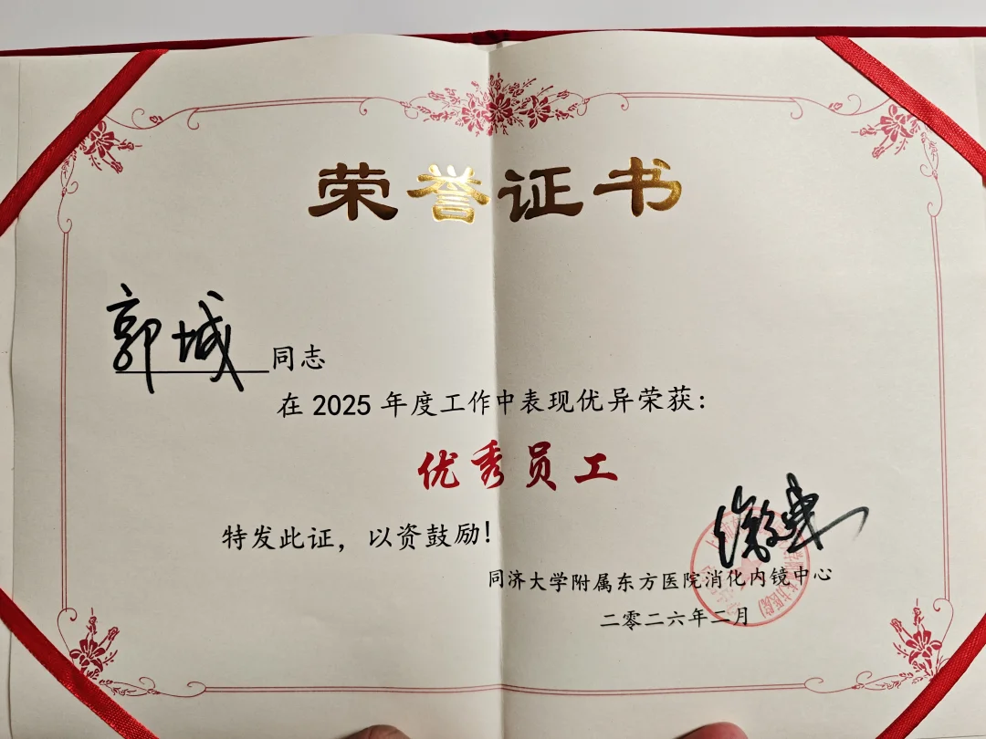 每一年,在台下看着身边的榜样们走上前台领奖 满眼的艳羡 今年 终于自己也迎来了这一份 最沉甸甸的荣誉[红色心形R][红色心形R][星R][星R] [星R]上海市东方医院消化内镜中心年度最佳员工 [爱心R]既是做自己近期工作的肯定,[两颗心R]更是对未来自己的鞭策! 补齐短板,继续努力! 高山仰止,景行行止 [加一R][加一R][加一R][加一R][加一R][加一R]