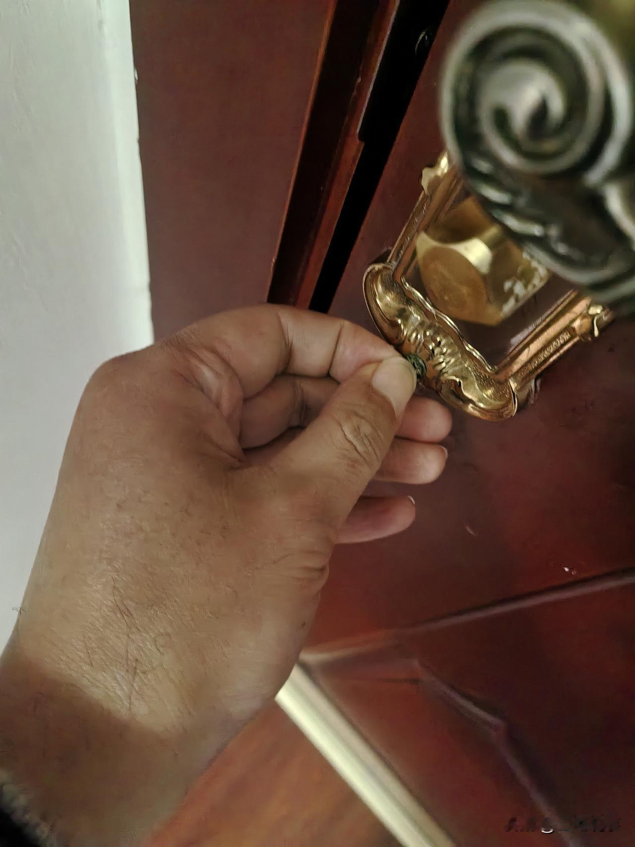 指甲的用处真不少啊,真是可以堪称神器啊。 平时我可以用支架来挖耳屎,还可以用来抓痒。 想不到我发现原来竟然还可以当螺丝起子用。 在关门的时候,我就感觉这个门把手有点松动了。 我就没有去找螺丝起子。 我就用指甲当起子用,结果还真的能够用。 达到了和起子一样的效果,固定紧了,门把手也不松动了。