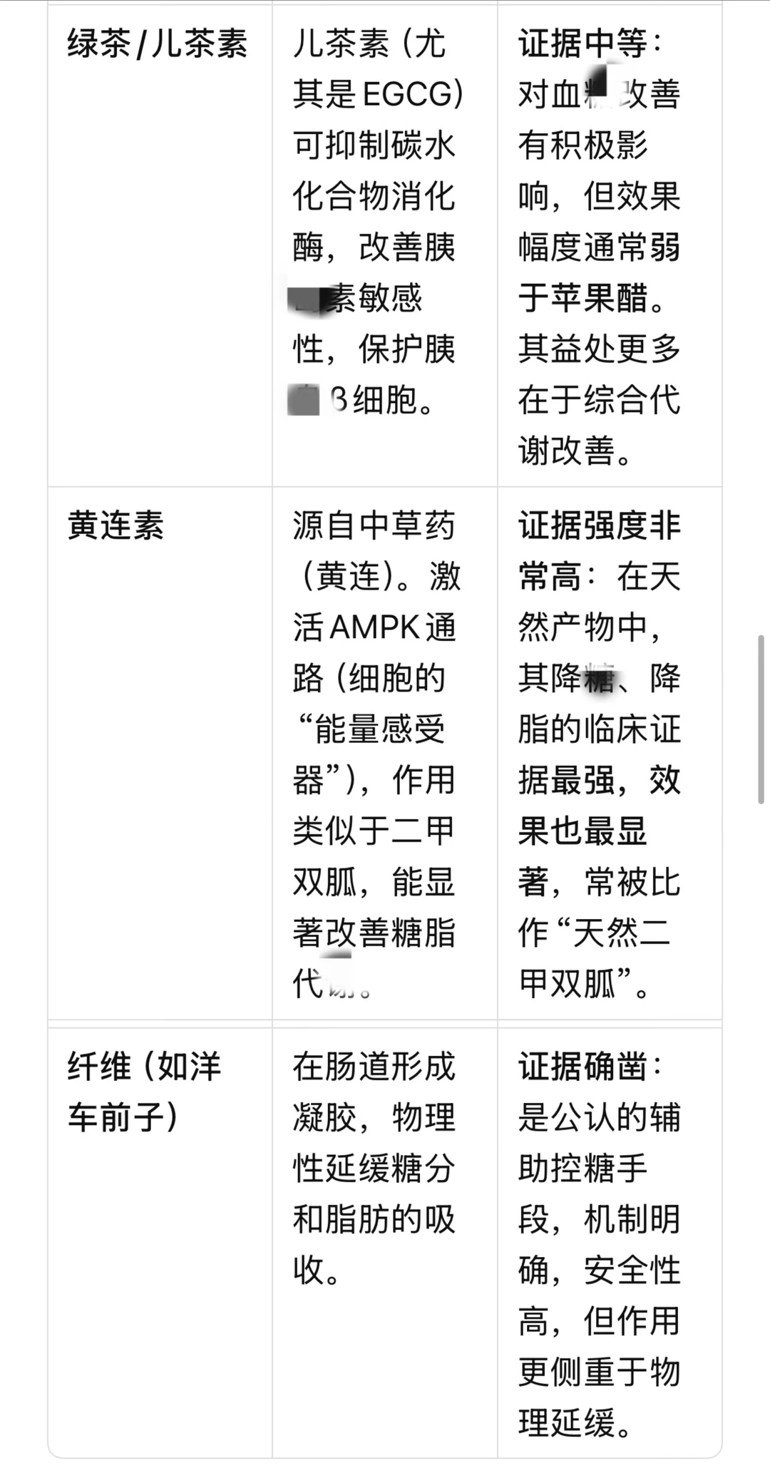 在效果强度上,黄连素 > 苹果醋 ≈ 肉桂 > 姜黄 > 绿茶 是一个大致的排序(需注意个体差异)。