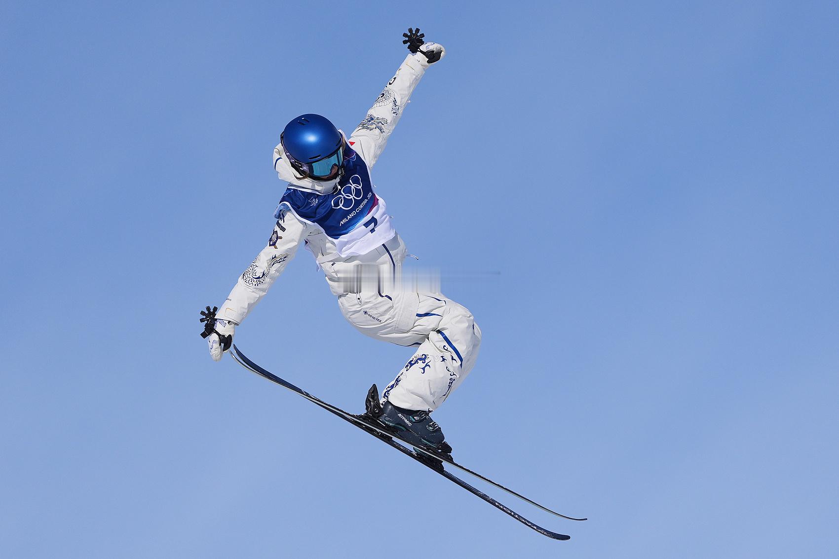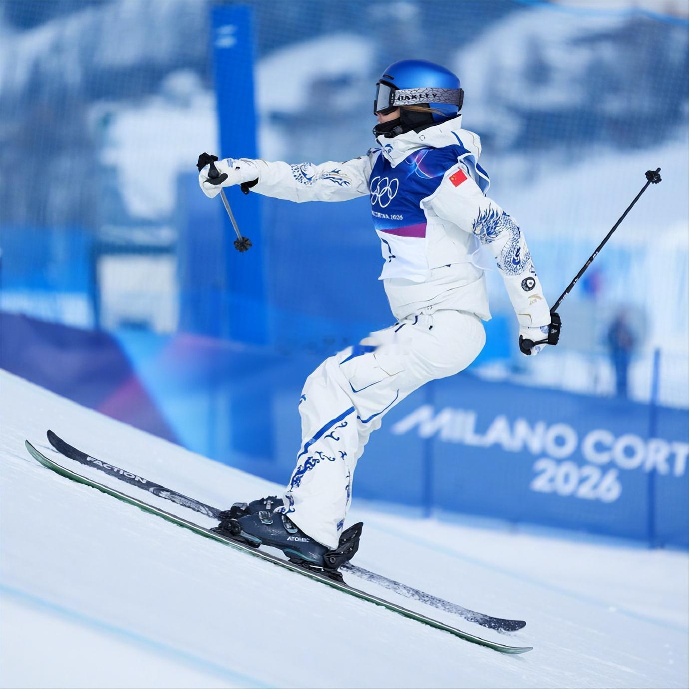 谷爱凌身着安踏青花瓷龙战袍参加女子自由式滑雪坡面障碍技巧决赛,最终,她以0.38分之差,遗憾摘得银牌,不过她依旧创造了属于自己的历史。
