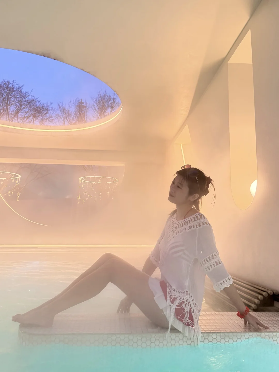 下雪天泡温泉 泡在游泳池里的冬天 冬天泡温泉 大长腿 南京 泳池拍照 泳装 泡一场热烘烘的冬日汤泉 冬天泡汤好去处 温泉泡一泡