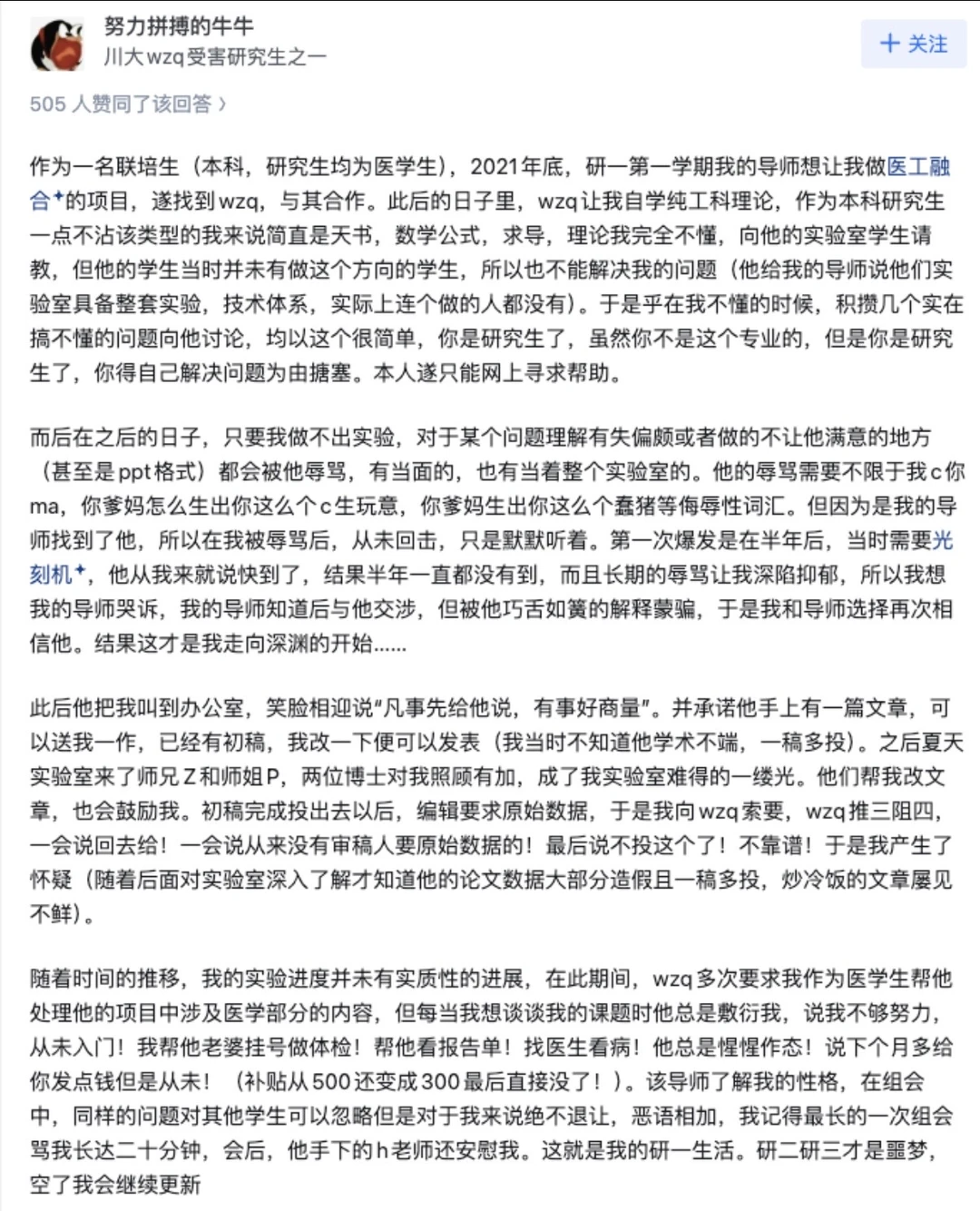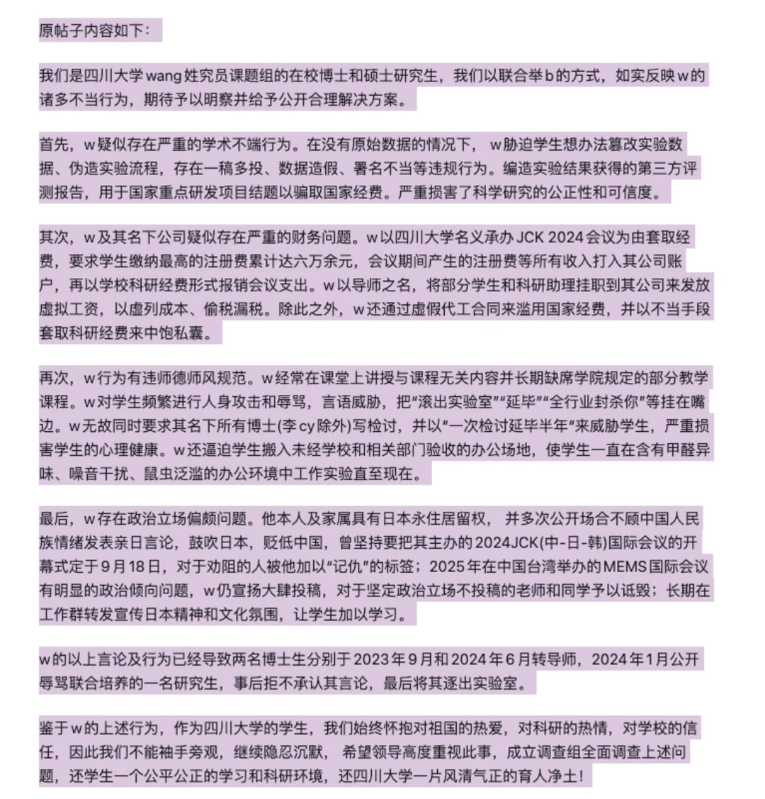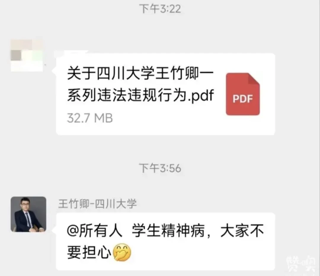 这个号最开始也是各种八卦学术界的新闻。某人也遭遇过类似情况,可能没这么严重。 随着时间的推移,发现也慢慢出现焦虑情况,再到后来麻木状态。后来,伴随自己状况的边缘化和好转,该号对此类事件基本是避之不谈,觉得还是要有些品味。但看到了一些截图和信息,目前我是有意气上身状态。所以,抓住这个状态,把情况和内容整理了下。大家可以简单看看情况。PDF获取也已经放了上来。至于王本人,大家可以看看PDF内容。下面有几张图,是聊天截图。真的,当真正把这些话说出来之后,真的会有『天地为我而开』的畅快感,更会发现,之前的种种担心,不过如此。勇敢的say no;勇敢的say no!其实也没啥!说完很放松!