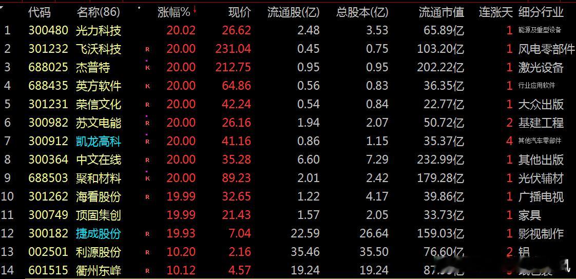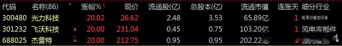 涨停龙头:惊艳今日:大涨主要:能源、风电零部件、激光设备、软件等板块逆势走强,相关龙头股表现突出等。欲知推手:下面透视涨停板龙头股票: