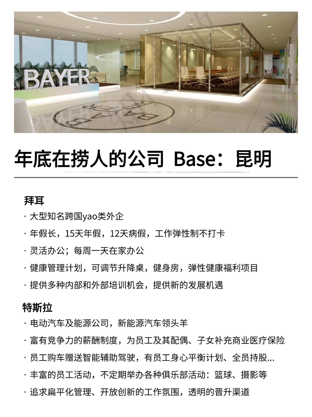 昆明发展真的越来越好,有不少小而美、冷门宝藏的公司,机会是真的很多的! 特别是有不少小众冷门的外企,真心建议大家可以去试试 · 为什么还是值得去外企? ✔️氛围好,对女性友好,年假长,基本上都是10天起步 ✔️很多还都支持居家办公、福利完善,是真的能实现WLB ✔️待遇也还不错,想在年后找工作的真的可以考虑考虑~ · 坚持日更✊🏻,帮大家在找工作路上顺利拿 offer! ·