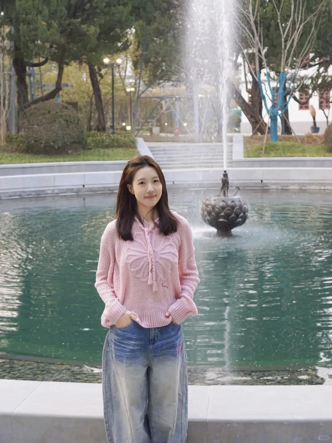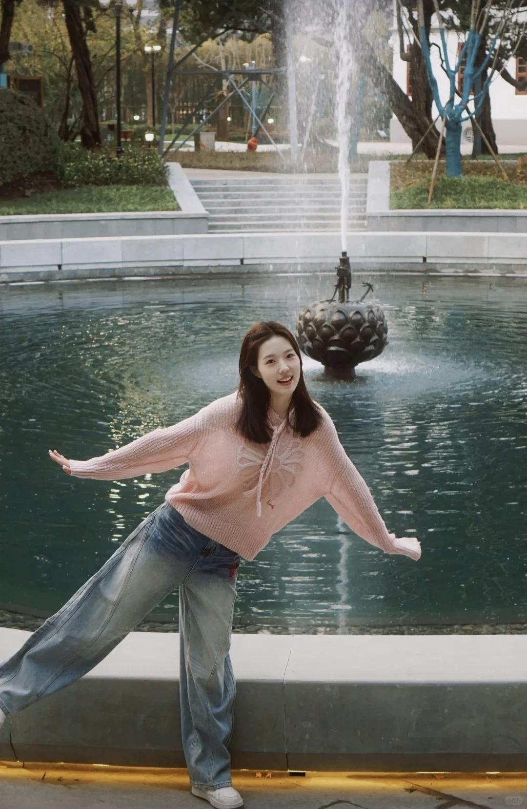 粉嫩毛衣搭配牛仔裤,少女心满满的一天💕户外留影,赏心悦目有气质的穿搭如何打造? 女人如何穿着显的有气质