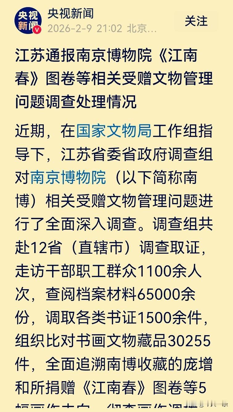 “南博事件〞用这么短时间把涉及的文物来龙去脉查清楚并回应社会关切,很了不起。 调查组直击核心矛盾,一方面分组全力追讨,通过跨部门协作与技术手段,让珍贵文物失而复得。另一方面,深挖违法乱纪行为,对失职渎职人员严肃追责,值得大加点赞。 事件背后折射出的制度漏洞与人性贪婪,令人深思。文物是民族记忆的载体,其管理失序不仅造成资产流失,更侵蚀文化公信力。彻查“南博事件”的果断行动,为所有文博系统树立了标杆——唯有以零容忍态度严惩蛀虫,以制度化手段筑牢防线,才能让文物真正成为传承文明的“国之重器”。