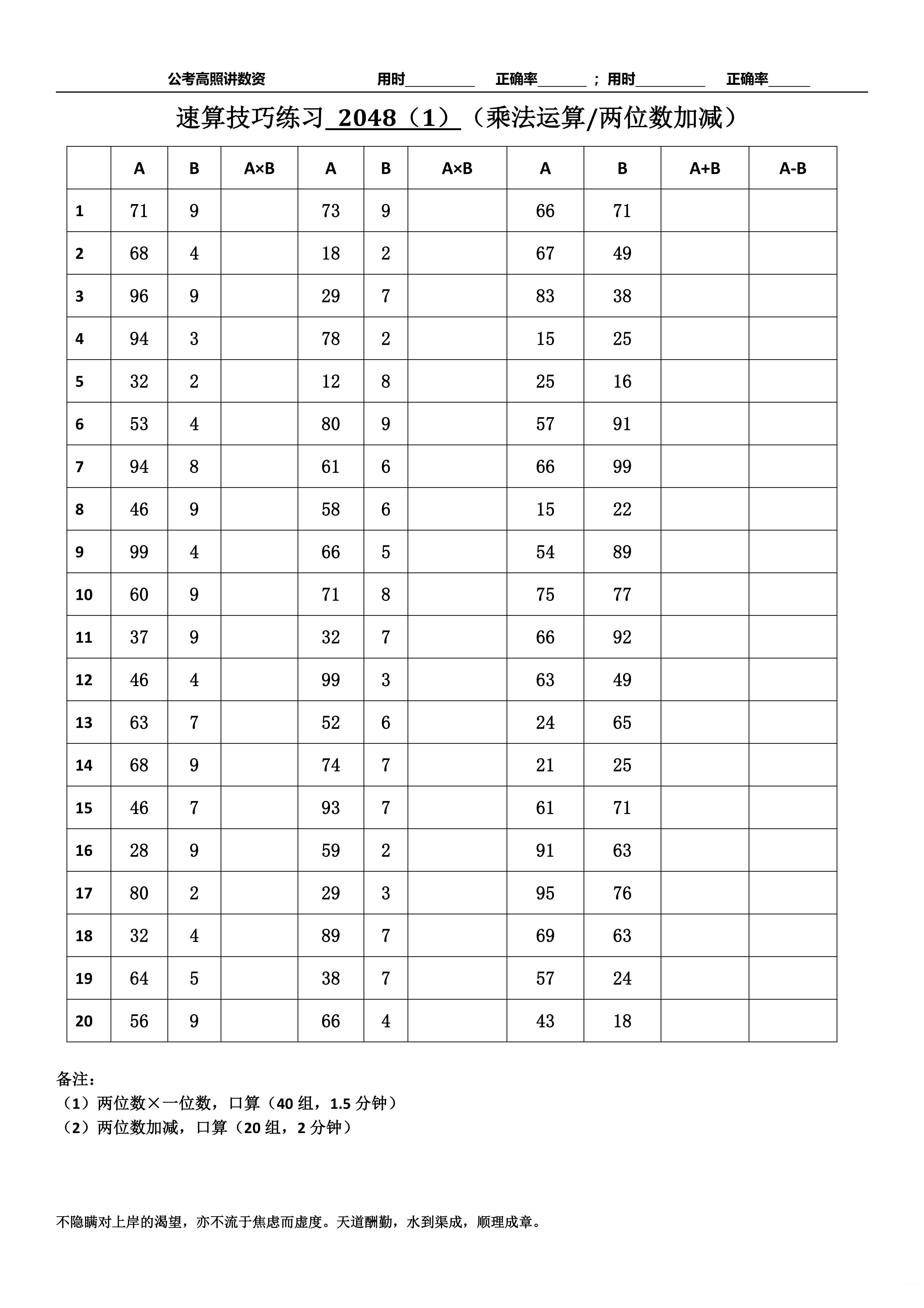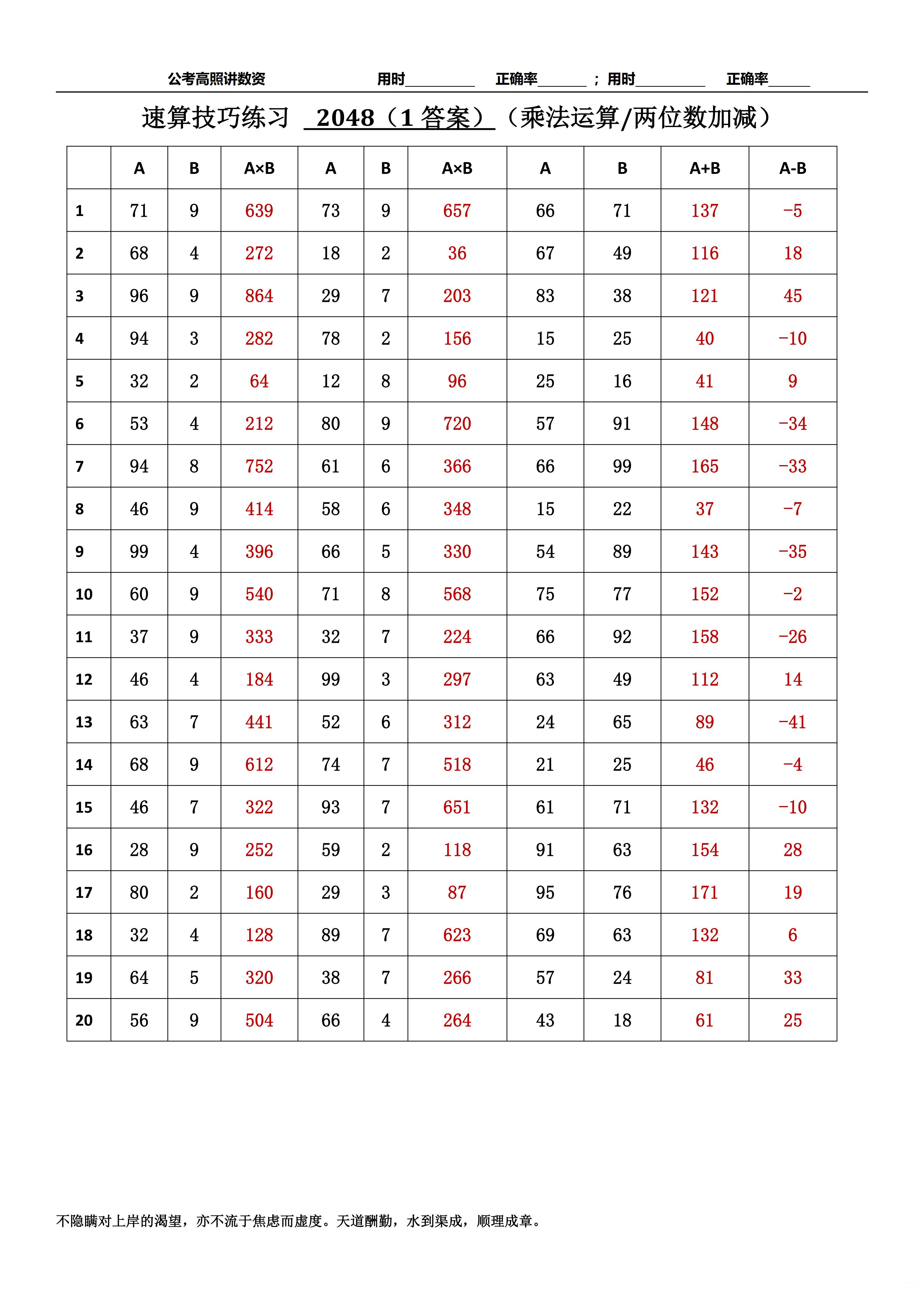 跟着高照练速算决战公考 速算练习2048