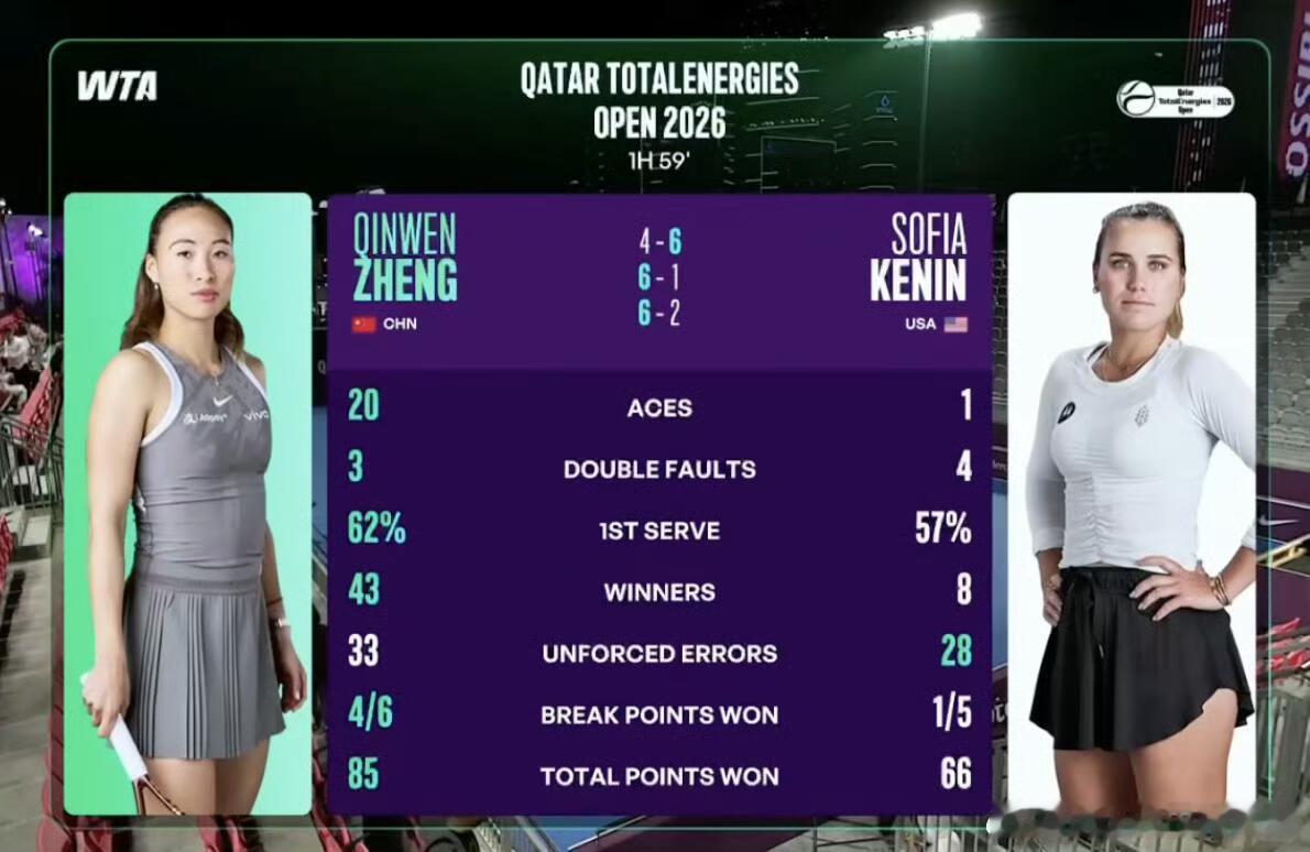 赛程还没有出,不是明天就是后天郑钦文逆转前澳网冠军郑钦文2比1肯宁wta