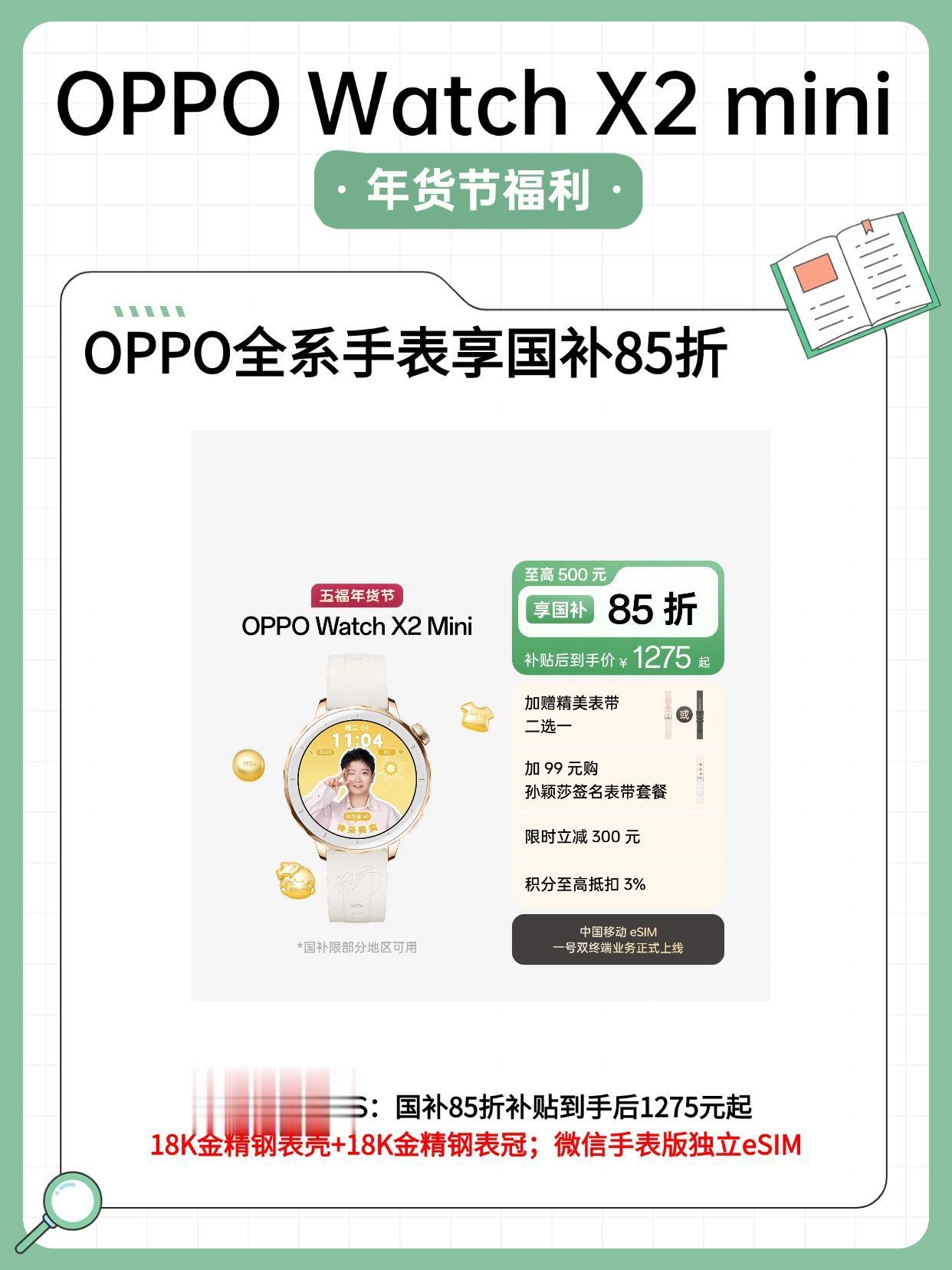 如果预算在1500元左右,没那么OPPOWatchX2mini就很合适。18K金精钢表+18K金