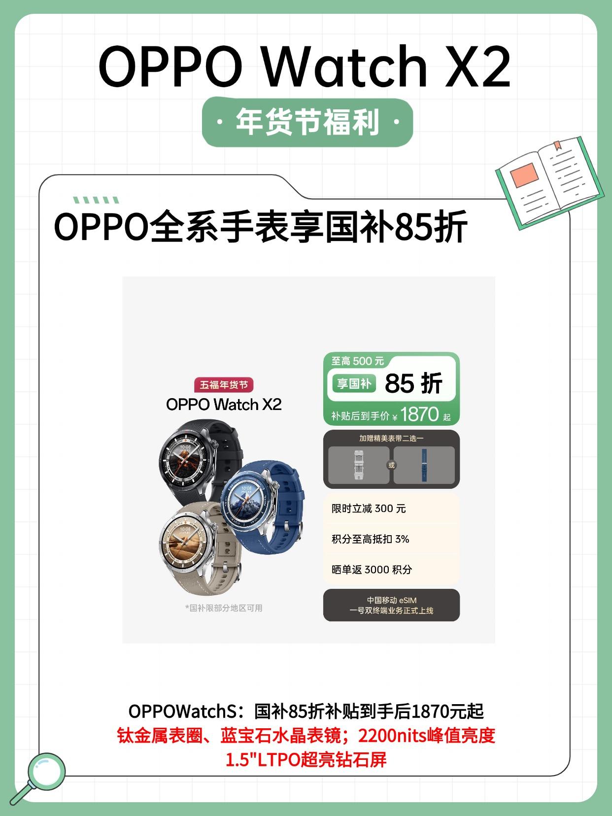 其中,如果预算在1000元左右,那么OPPOWatchS就很合适。现在OPPO手表全系享受国补85折,综合补贴后他的价格是1020元起步。圆形表盘、大小合适、重量很轻、功能丰富,能满足大部分用户的使用需求了。
