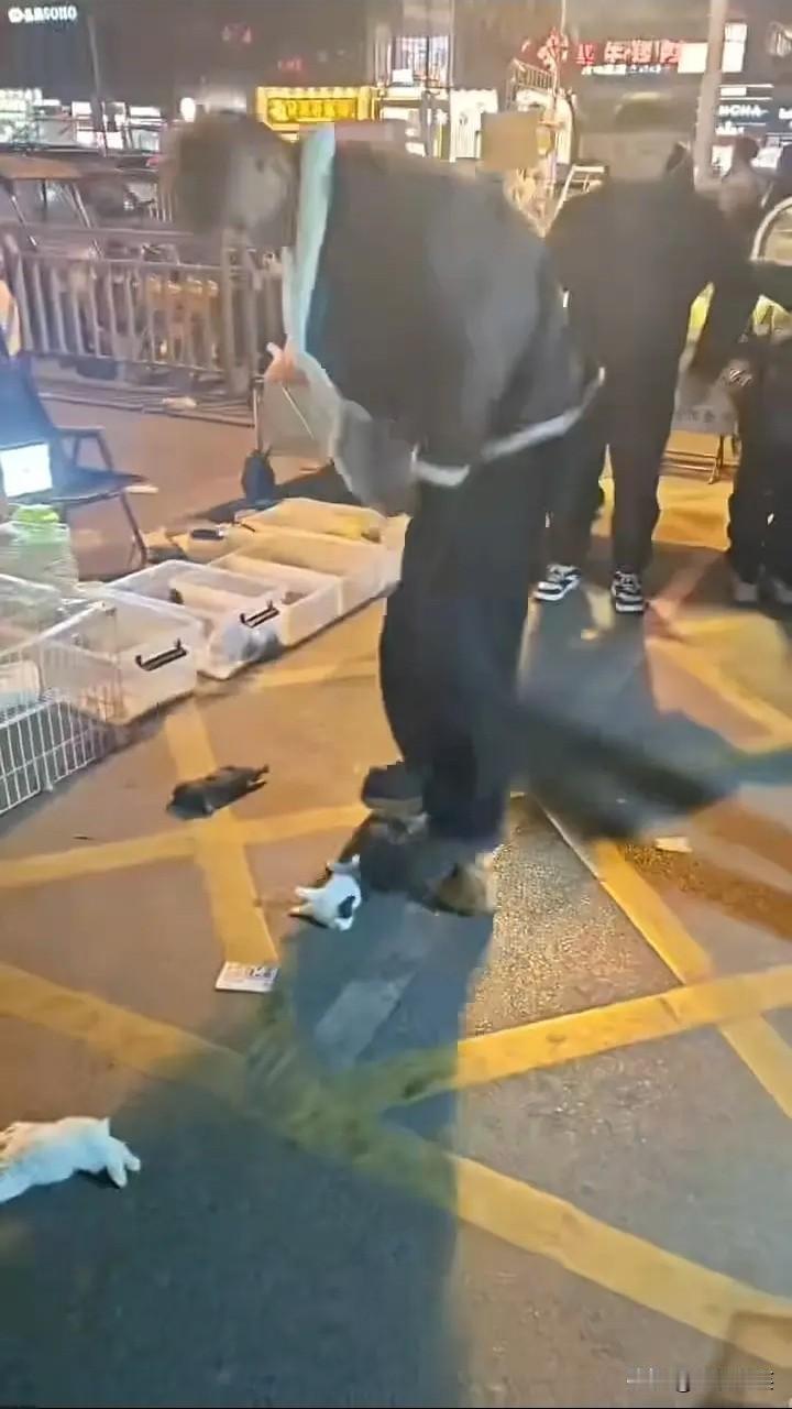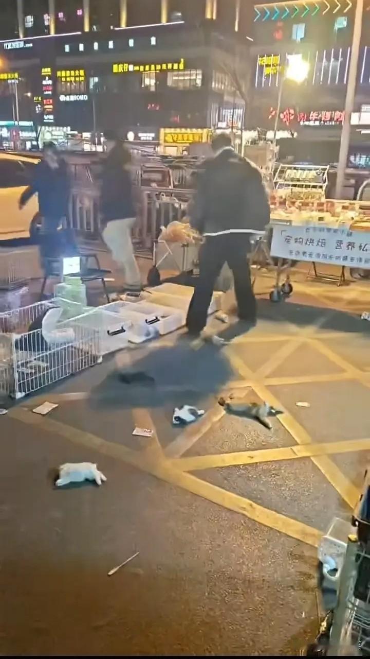 毫无人性!河南漯河市源汇区昌建广场地下通道旁边,一摊贩摔死多只兔子!还用脚去踩兔子,兔子的肠子都流出来了! 晚上7点多,有好心人报警,摊贩对帽子叔叔说:兔子拉稀! 教育完之后,摊贩依然不知悔改!7点40左右又摔兔子! 知情人透露,摊贩是因为别人问了价没买他的兔子,买了其他摊贩的兔子,所以生气摔了自己的兔子! 还有知情人透露:这个摊贩我认识,去年他卖仓鼠也摔过,想博取路人的同情心买他的东西! 不管是兔子,还是仓鼠,他们都是一条活生生的生命啊!可以不爱,请不要伤害! 目前据报警人透露,摊贩可能会被拘5天以上,具体情况等待通报。
