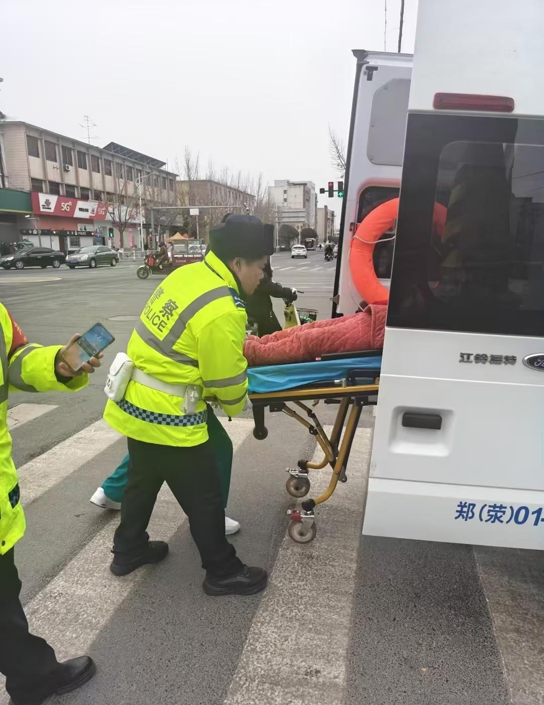 今天下午,荥阳万山路与索河路路口上演暖心一幕。一位老人横穿马路时不慎摔倒,头部受伤。正在执勤的荥阳交警发现后立即上前,一边安抚老人,一边拨打120并疏导交通,为救护开辟出安全通道。救护车到达后,交警全程协助送医,并联系家属,直至家人赶到才默默离开,重返岗位。郑州交警提醒 请照看好家中老人,过马路时请走斑马线并注意安全,尽量陪同护送。