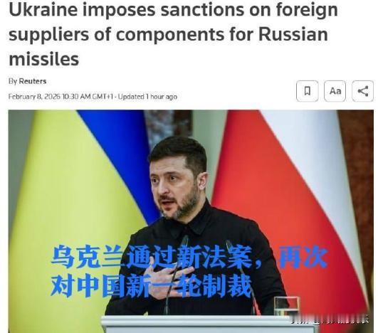 乌克兰新制裁法案引争议:矛头直指中国,自身导弹零件供应链恐遭重创 据外媒报道2026年2月8日,乌克兰总统泽连斯基签署新总统令,对包括中国、阿联酋、巴拿马及多个前苏联加盟共和国在内的数十家企业实施制裁,理由是这些实体涉嫌协助俄罗斯获取制造导弹和无人机的关键零部件。 然而,这一举措引发广泛争议,因为乌克兰自身使用的导弹和无人机,其零部件绝大多数同样依赖全球民用市场,而最大、最稳定的来源正是中国企业。 此次制裁若导致中方对乌克兰无人机零件出口禁令,哪怕通过第三方也不行,乌克兰将面临严峻挑战。毕竟,连稀土通过第三方出口都可精准追溯,无人机零件显然更易追踪。 根据乌克兰海关数据,2022年至2025年,乌方进口的无人机整机及核心零部件中,中国占比常年维持在90%左右。例如,FPV穿越机所用的无刷电机、飞控板、图传模块、GPS定位器,甚至改装用的手机信号中继器,基本都来自深圳华强北及长三角的电子市场。这些产品以成本低、交货快、型号全的优势,成为欧洲供应商难以比拟的选择。 2024年下半年,中国出于对军民两用物项出口风险的考量,开始对部分无人机相关技术实施出口管制。结果立竿见影:2025年10月,乌军前线无人机供应骤减,许多部队陷入“有战术、无装备”的窘境。乌方不得不以三倍价格紧急采购欧洲产品,但产能不足、成本高企,导致所谓“百万架无人机”计划几乎停摆。 泽连斯基称,制裁是因为在中企出口的民用零件中,发现了被用于俄制“天竺葵”无人机等武器系统的组件。但关键在于,这些零件本身属于通用型民用商品,既可用于消费电子,也可被改装用于军事用途——全球各国军队都在这么做,包括美军和乌军自己。因此,乌克兰的新制裁法案不仅难以切断俄罗斯的供应链,反而可能使自身导弹和无人机生产陷入困境。