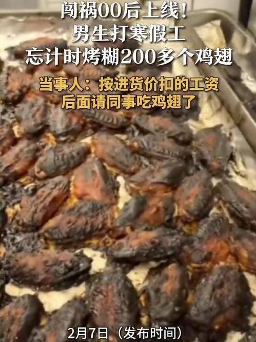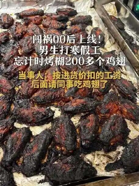 济南有个00后小沈,寒假打工整出个狠活儿——往烤箱里怼了200多个鸡翅,结果忘定闹钟,全给烤成黑炭了。 这堆焦翅膀往那一摆,谁看谁懵。黑乎乎那层,说白了就是蛋白质跟油脂烧糊了,里面容易冒出苯并芘、杂环胺这些玩意儿。偶尔啃一口可能没啥,但要是天天整这个,真挺伤身子的,肠胃病、癌症风险都得往上窜。 再说,这玩意儿吃下去也遭罪啊。糊成炭的蛋白根本不好消化,肚子胀、反酸都是轻的,肠胃本来就脆的人更扛不住。而且营养早就烧没了,就剩个糊味,图啥呢? 他们老板倒是心大,按成本价扣了小沈工资之后,居然招呼大伙儿一起“尝鲜”。一帮人嘻嘻哈哈啃得还挺欢——但说真的,这种热闹还是少凑为妙。 换你你吃不吃?要我肯定扔了。偶尔啃一次可能死不了,但谁愿意拿自己身体开玩笑?糊成炭的东西,真没必要往嘴里塞。 大伙儿也唠唠,这事换你咋整?