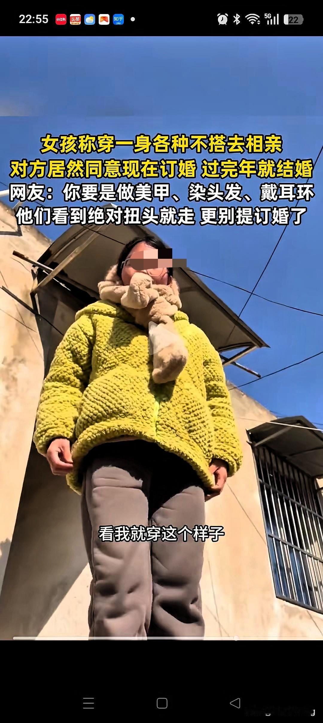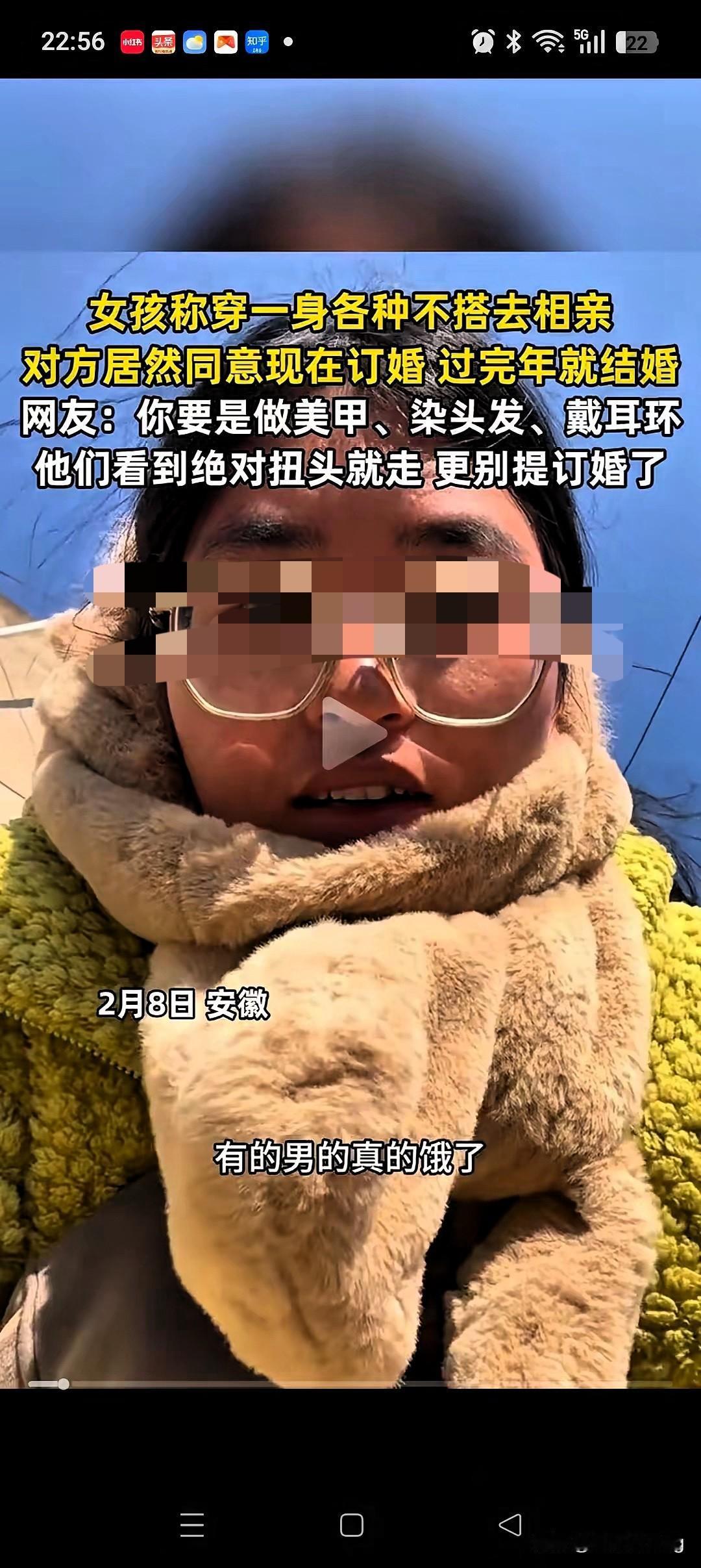 笑不活了!安徽女子故意穿得土气去相亲,本想劝退对方,结果男方当场同意订婚,过完年就结婚! 女子自己都懵了,吐槽说打扮成这样都有人看上,难道是对方太“急”了?其实根本不是。现在越来越多人相亲,早就不看表面打扮了,比起浓妆艳抹、精致包装,大家更看重真实、踏实、能过日子。 男方一眼看中的,是她不做作、不虚荣的样子,这样的姑娘相处起来舒服,过日子也实在。相亲看的从来不是一时的光鲜,而是长久的舒服。 你相亲时会刻意打扮,还是用最真实的样子去见面?来评论区说说~