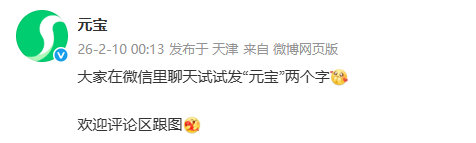 【元宝微信发红包元宝微信福袋】发文表示:大家在微信里聊天试试发“元宝”两个字
