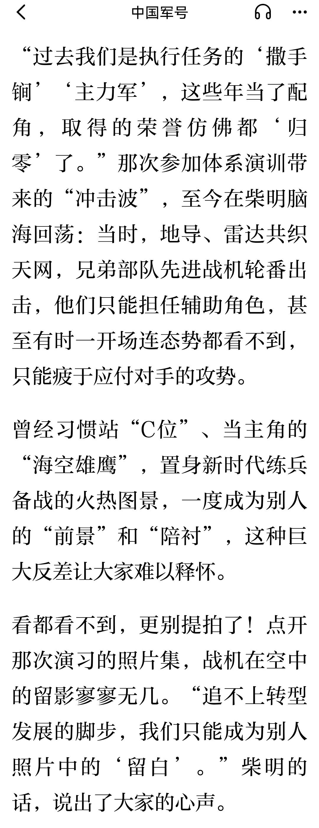 “过去我们是执行任务的‘撒手锏’‘主力军’,这些年当了配角,取得的荣誉仿佛都‘归零’了。”曾经习惯站“C位”、当主角的“海空雄鹰”,置身新时代练兵备战的火热图景,一度成为别人的“前景”和“陪衬”,这种巨大反差让大家难以释怀。